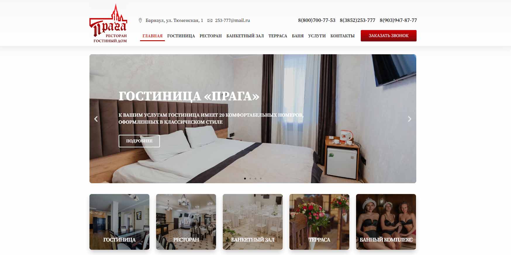 Трехзвездочный отель недалеко от центра Барнаула. Находится рядом с ж/д и автовокзалом, парком отдыха «Изумрудный» и торгово-развлекательными центрами. В отеле 24 номера, в каждом — кондиционер, ЖК-телевизор, холодильник, сейф, телефон, фен, Wi-Fi, рабочее место. Есть номер для молодоженов. К услугам гостей переговорная, бизнес-центр, конференц-зал, бесплатная парковка.