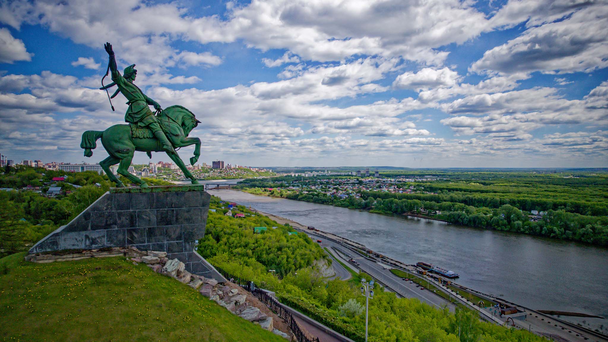 Отдельно стоит сказать про памятник Салавату Юлаеву, этот человек был сподвижником Емельяна Пугачева и символизирует стремление башкиров к независимости. Салават Юлаев — визитная карточка Уфы и всего Башкортостана. Монумент находится на крутом берегу реки Белой и его видно со всех концов столицы благодаря впечатляющим размерам. Рядом памятником находится красивая аллея — излюбленное место прогулок местных жителей и туристов.