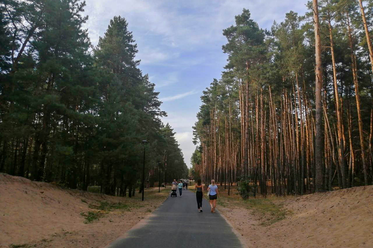 Огромная зеленая зона для отдыха и прогулок. Лесопарк расположен рядом с зоопарком: один из маршрутов проходит настолько близко, что можно любоваться на лося Родиона, величественно вышагивающего по своей территории. У входа посетителю нужно определиться с маршрутом и выбрать одну из трех троп для прогулки. Они различаются по протяженности (от 1 до 4 км) и сложности (от гладких участков до спусков и подъемов). Места достаточно — здесь без проблем расходятся и спортсмены, пришедшие на пробежку, и велосипедисты, и родители с детьми и колясками, и собачники. Да, с питомцами можно. Кстати, один из маршрутов доходит до речки — на берегу можно устроить пикник.