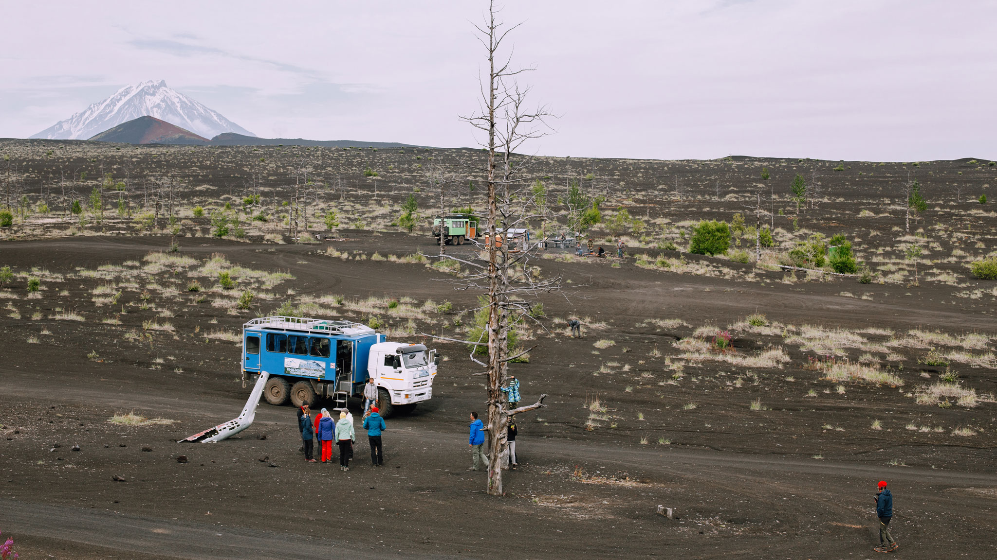 Толбачик — уникальное место. Территория в 376 тысяч гектаров покрыта шлаком, это последствия извержения 70-х годов. Пейзажи здесь напоминают лунный рельеф. Черная пустыня и шлаковые конусы, их здесь около 400 штук. В советское время тут испытывали модели лунохода. Одно из последствий извержения — мертвый лес. Засыпанные горячим шлаком и высохшие деревья. Зрелище жуткое и завораживающее.