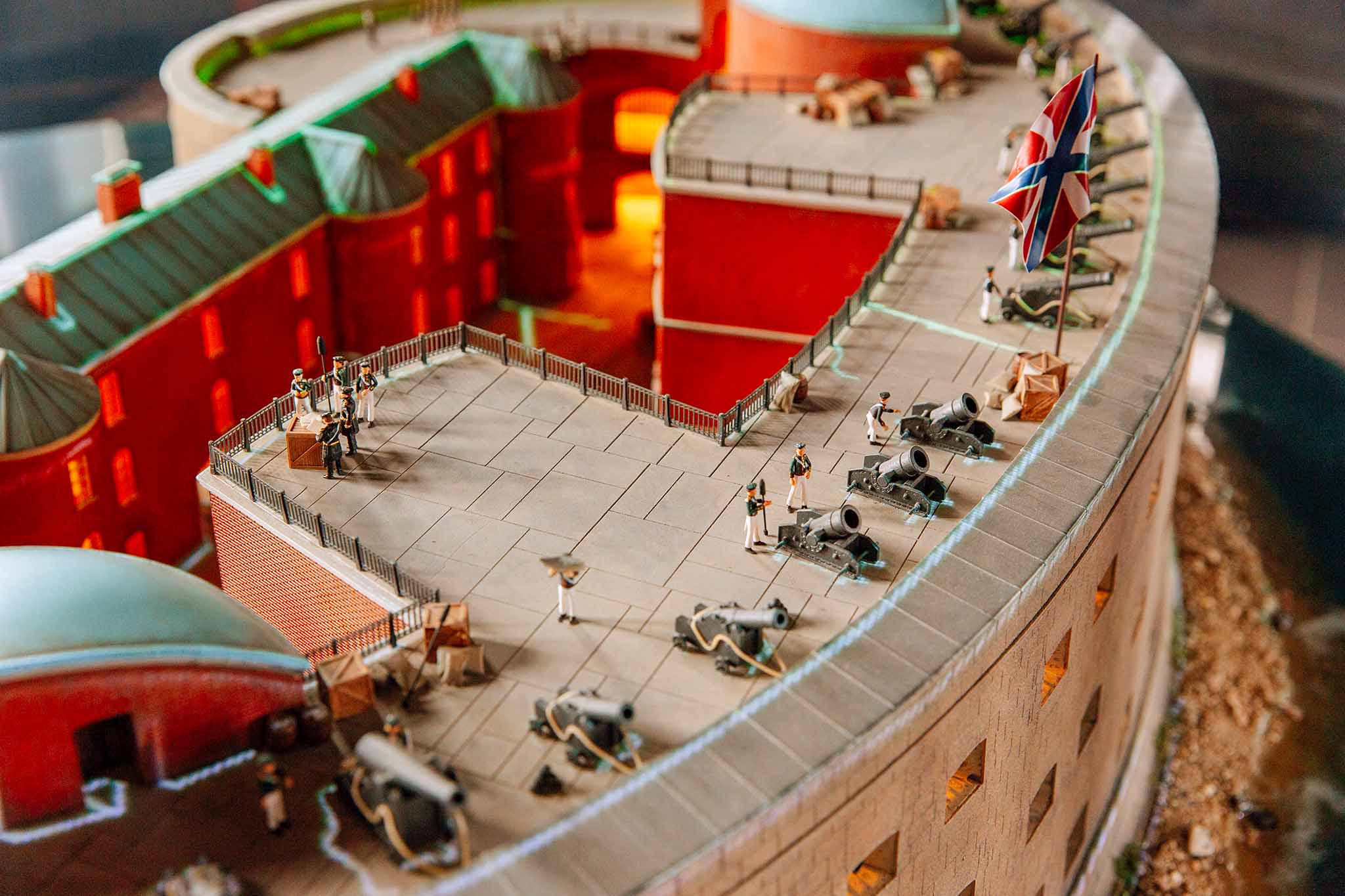 Долгое время Кронштадт был закрытой базой военного флота, треть территории острова до сих пор принадлежит министерству обороны. Но сегодня это популярное туристическое направление. На набережной в здании бывшей Голландской кухни разместилось несколько выставок, одна из них посвящена кронштадтским фортам. Все форты, даже разрушенные, здесь воспроизведены в виде макетов.