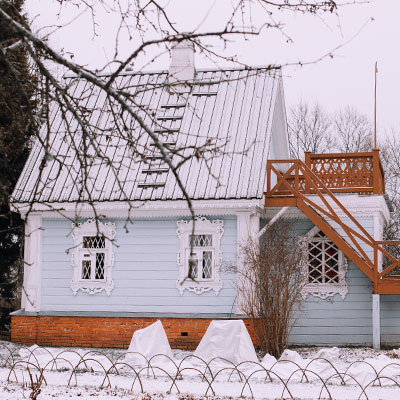 Мы притормозили на полчасика у нарядного теремка, который стоит прямо на трассе М7 (ул. Московская, 43), с правой стороны по пути в Нижний Новгород. Мимо не проедешь. Этот шедевр деревянного зодчества начала XX века можно считать визитной карточкой Гороховца. Бревенчатый особняк промышленника-судостроителя Шорина (сегодня Дом творчества и ремесел) действительно похож на сказочный терем с двумя башнями. Обратите внимание на уникальную правую башенку, сложенную из идеально гнутых по кругу (видимо, под горячим паром) толстых бревен. Обязательно обойдите дом — на заднем дворе его есть забавные деревянные скульптуры, в том числе, и упомянутого Царя Гороха.