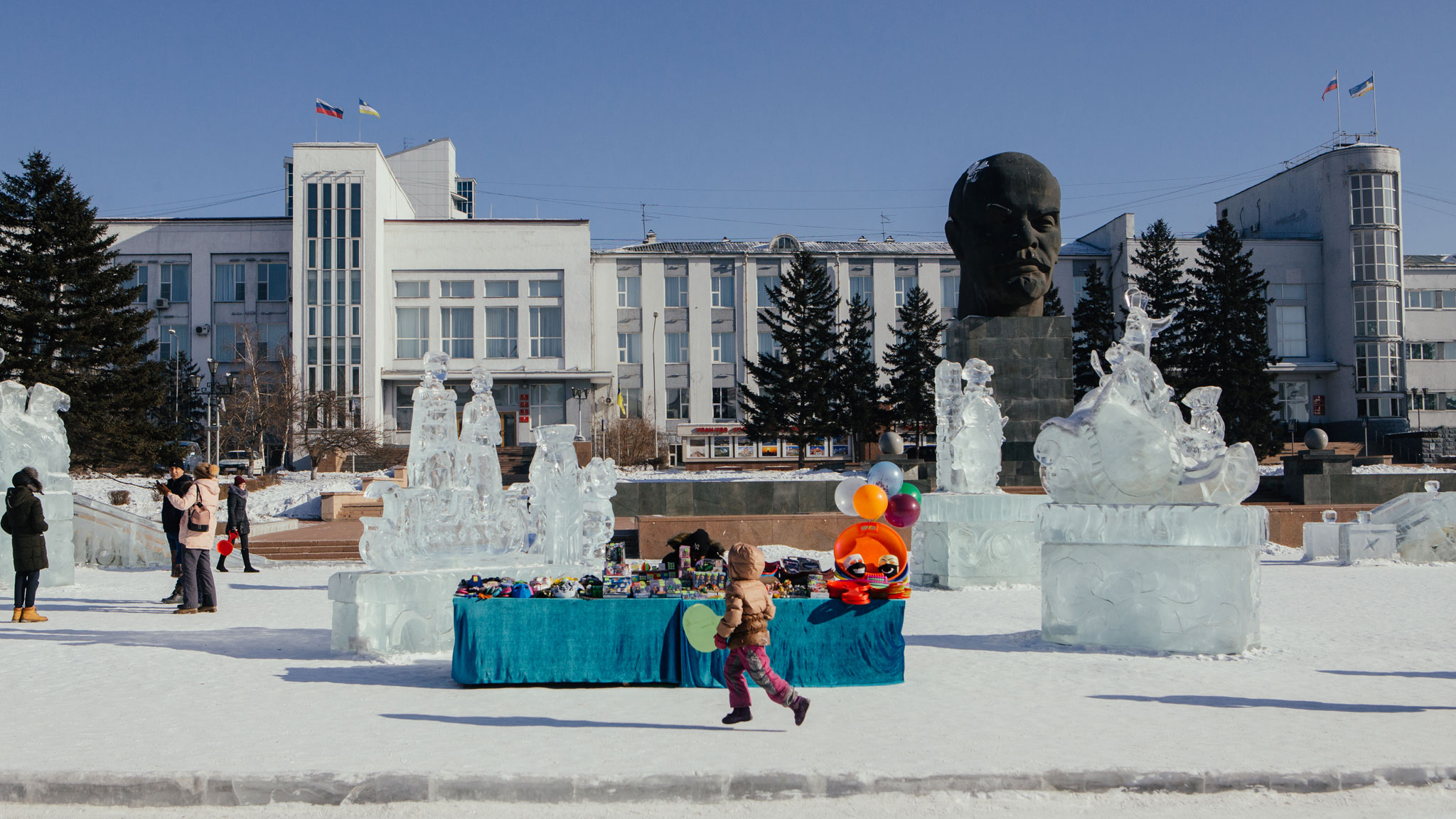 После распада Союза гигантскую голову не стали убирать, пусть стоит. Зимой на площади вокруг нее каток и выставка ледяных скульптур, которые по вечерам подсвечивается. Отблески цветных огней падают и на Ленина. Получается нарядно, в духе постмодерна. Ленин хитро щурится, мимо бегут счастливые девушки в унтах ручной работы.