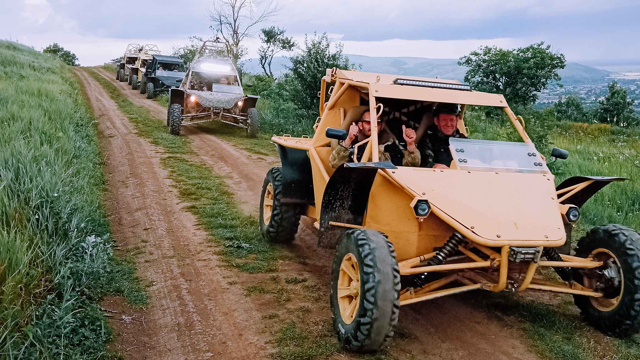 Мы разгоняемся. Я тороплюсь догнать ушедшую вперед колонну боевых багги, будто вышедших из фильма «Безумный Макс». Даже приличному человеку иногда хочется почувствовать себя панком. На этих странных машинах легко представить себе воинственных лысых техно-панков с татуированными лицами, а едет наша туристическая группа, приличные интеллигентные люди.