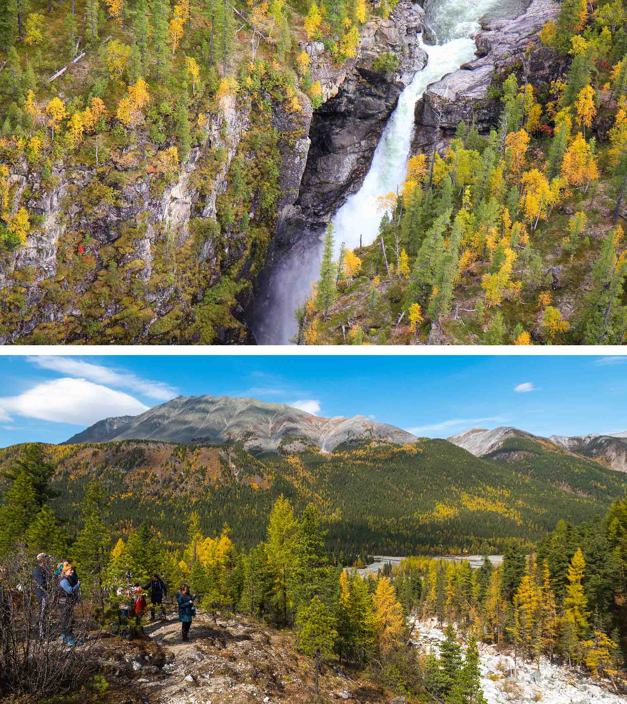 Панорама их впечатляет: каньон реки обрывается тридцатиметpовой ступенью. По пути с четырех смотровых площадок можно сделать уникальные кадры водопадов и величественных вершин Восточных Саян.
