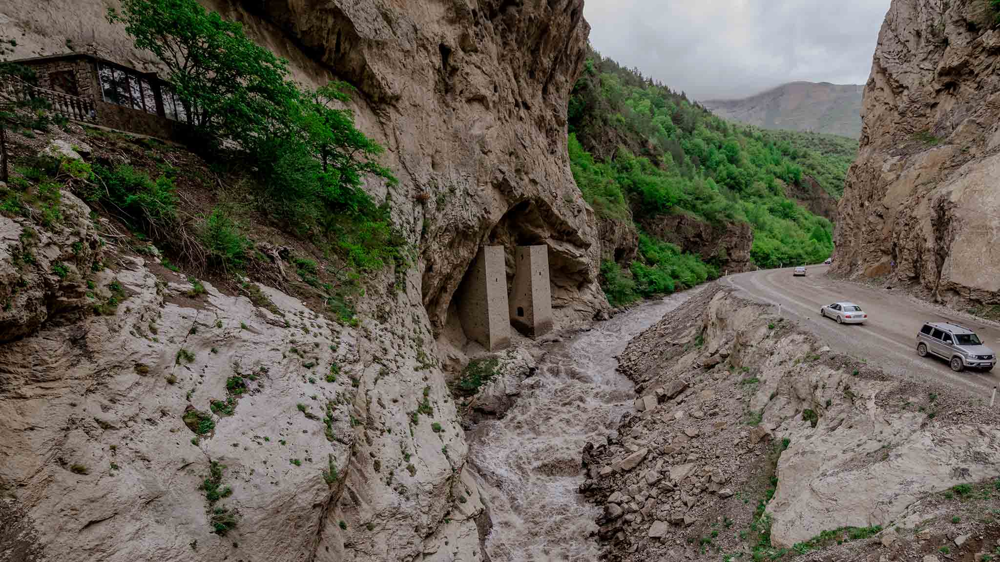 Название часто переводят как «город мертвых» или менее грозно, но поэтично — некрополь. Хотя дословно на русском языке место называется «Поселение божества». Это древний погребальный комплекс, который в былые годы служил последним пристанищем для разных людей. В том числе, заболевших чумой. В склепах покоятся черепа и останки усопших. Место находится на границе с Грузией, тут очень крутые виды гор. Но прежде чем попасть сюда, нужно пройти российский погранпост, предоставить транспорт к осмотру и показать документы.