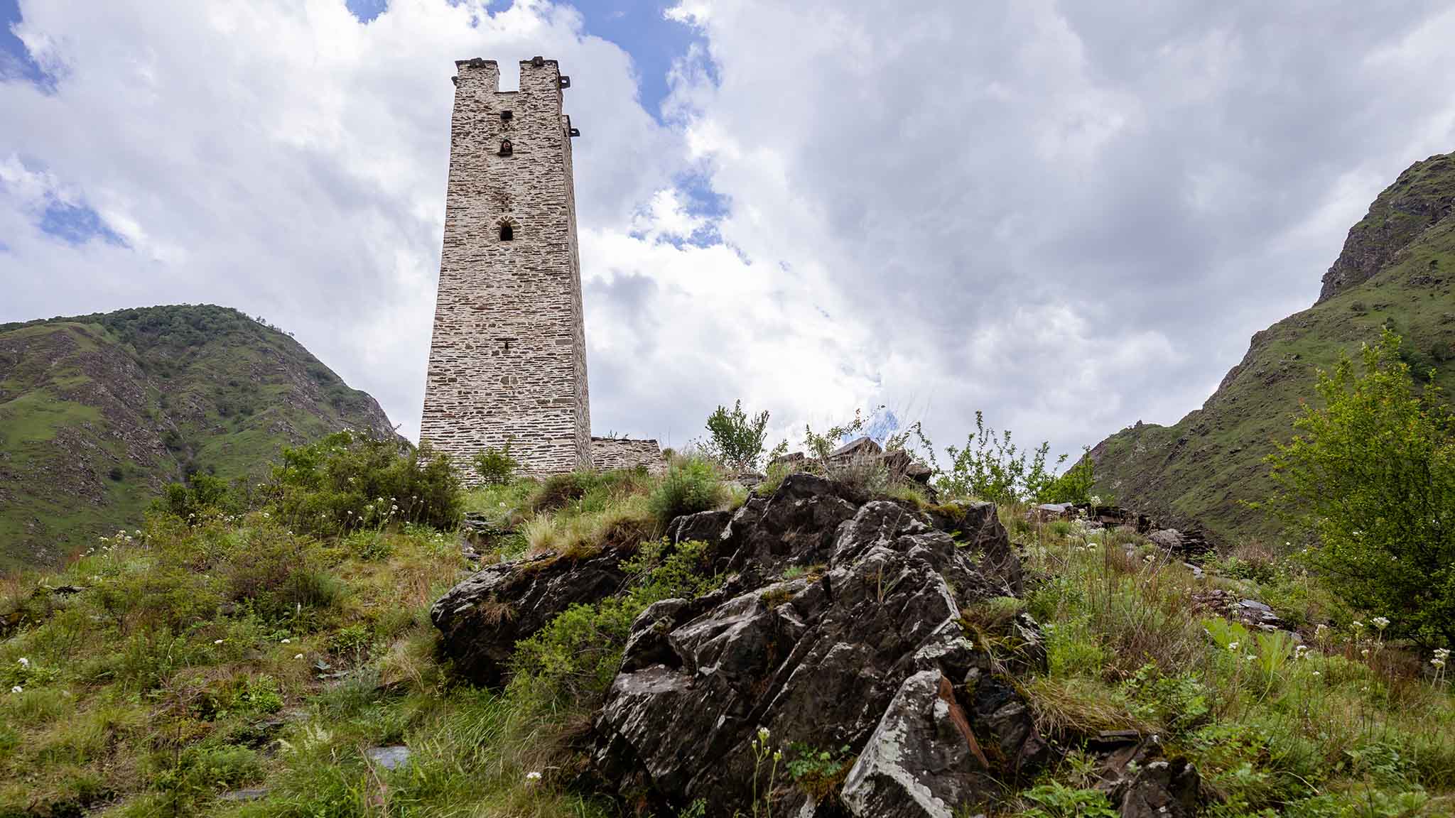 Вдоль реки Аргун и трассой Р-217 воссозданы древние оборонительные башни. Это реконструкция исторических сооружений. Но на фоне каньона смотрятся впечатляюще. Добраться до них можно только жарким летом, когда Аргун пересыхает. В остальное время мощный поток просто не даст этого сделать. Рядом ресторан, гостиница и зип-лайн (экстремальный спуск по натянутому тросу).