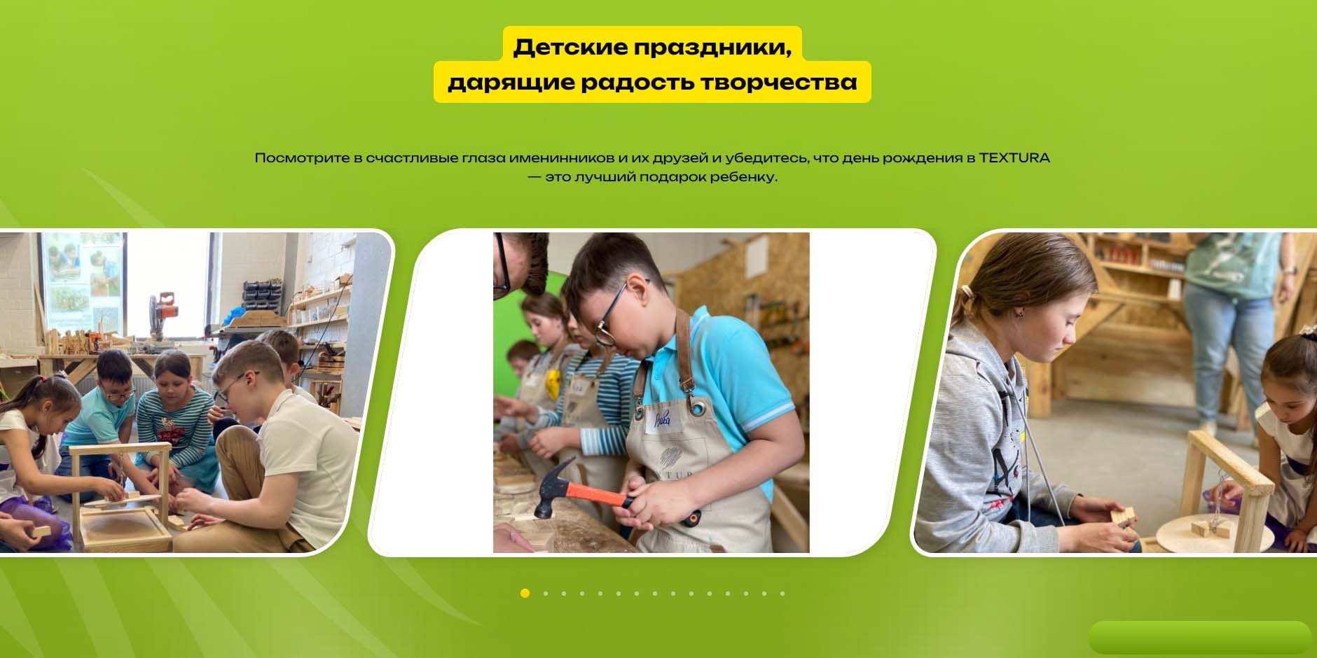 Оригинальный формат празднования дня рождения — совместить мастер-класс по столярному делу с развлекательной программой. Здесь можно сделать различные поделки из дерева под руководством мастеров-наставников. Дополнительно можно заказать аниматора, фотографа и видеографа.