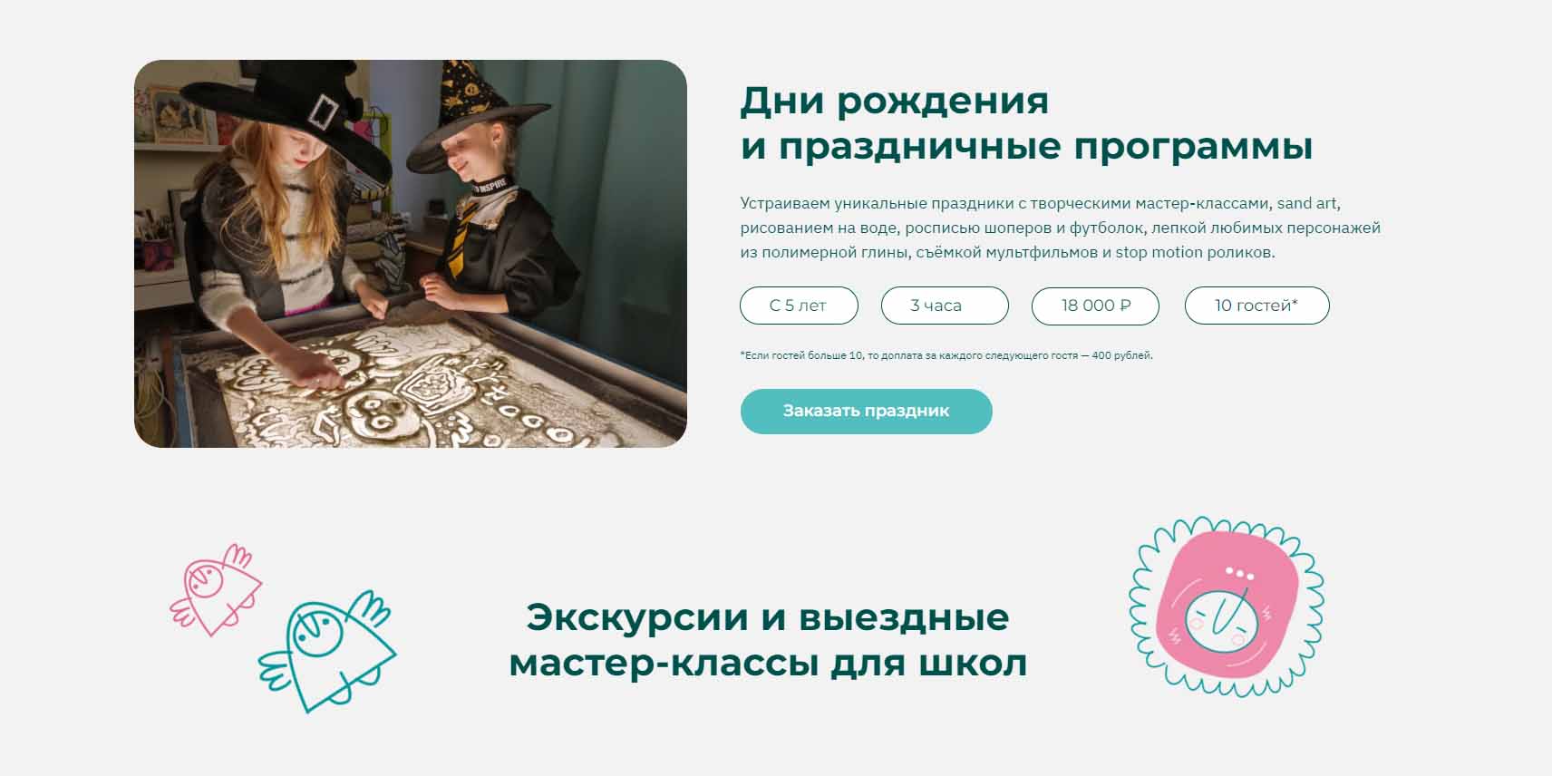 | Мастер-классы (рисование, поделки) | 4500-7000 рублей |