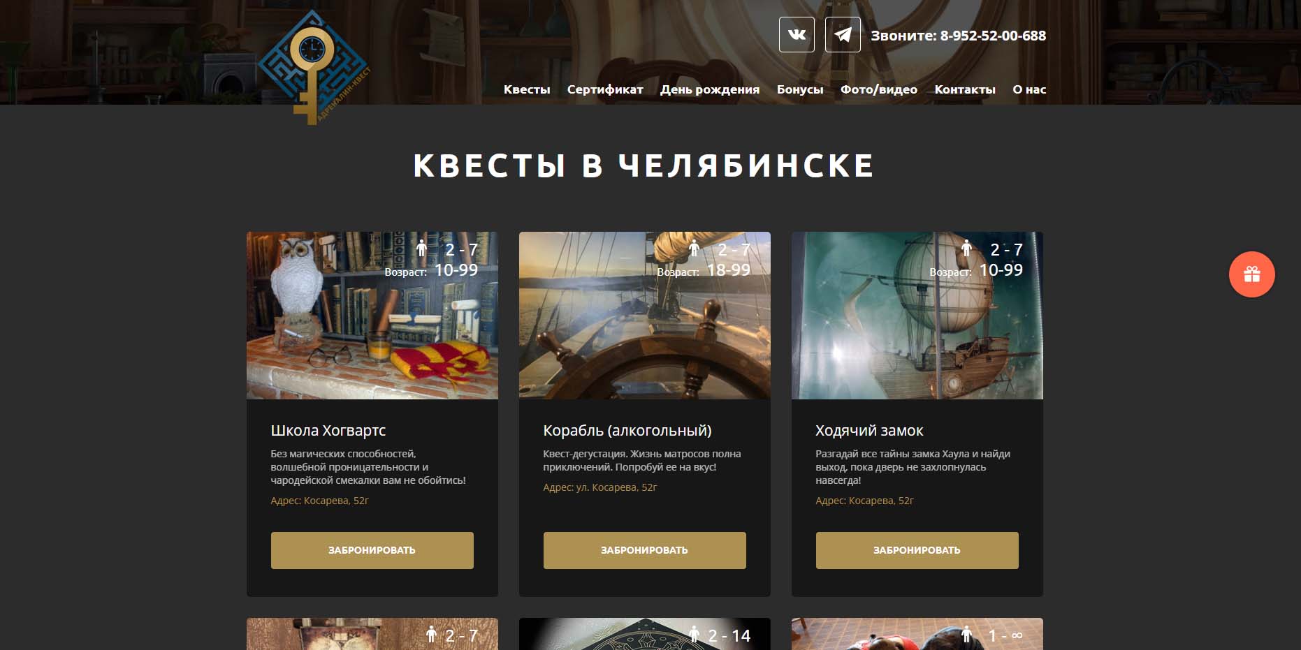Предлагают на выбор большое количество игр: можно почувствовать себя волшебником из Хогвартса, пройти лабиринт из лазерных ловушек и остаться незамеченными или разгадать все тайны старого замка. В день рождения можно забронировать сразу 2 или 3 квеста с перерывами на чаепитие в отдельной комнате. Там же есть настольные игры.