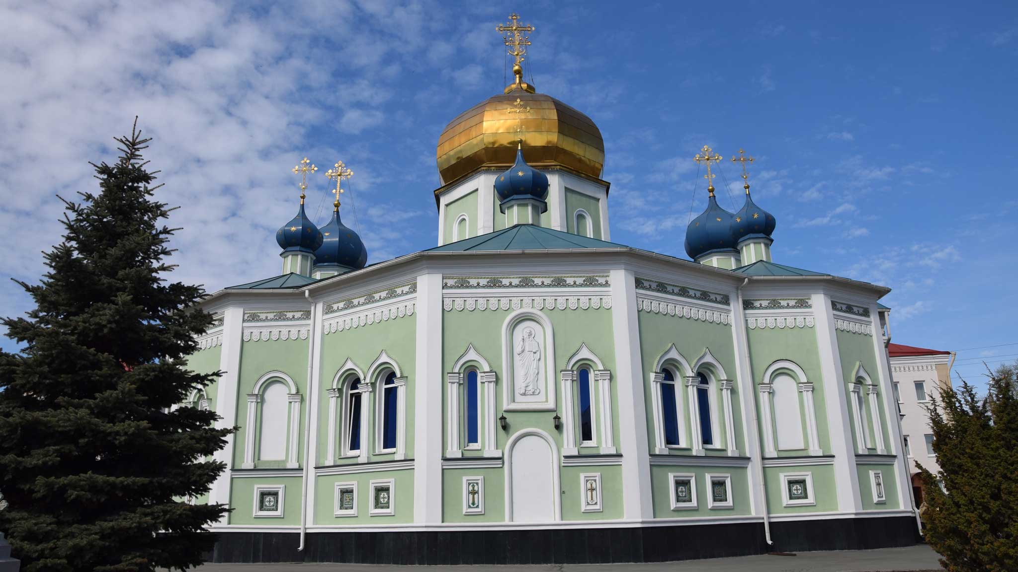 В народе этот храм прозвали Белым, или Голубым — по цвету стен и кровли. Сейчас Свято-Симеоновский является кафедральным, то есть главным собором Челябинска. Это небольшой, но элегантный трехпрестольный храм с небесно-синими маковками, увенчанными ажурными золотыми крестами.