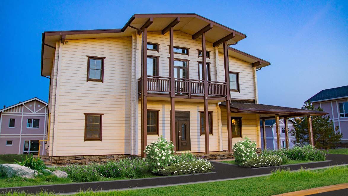 По проекту всего 68 двухэтажных домов двух типов: в блочно-кирпичном исполнении, из натурального дерева по немецкой технологии Valdek – крупные элементы здания делают на заводе, а потом на месте производится монтаж и сборка. Площадь коттеджей одна – 183 квадратных метра. Каждый дом сдается в черновой отделке.