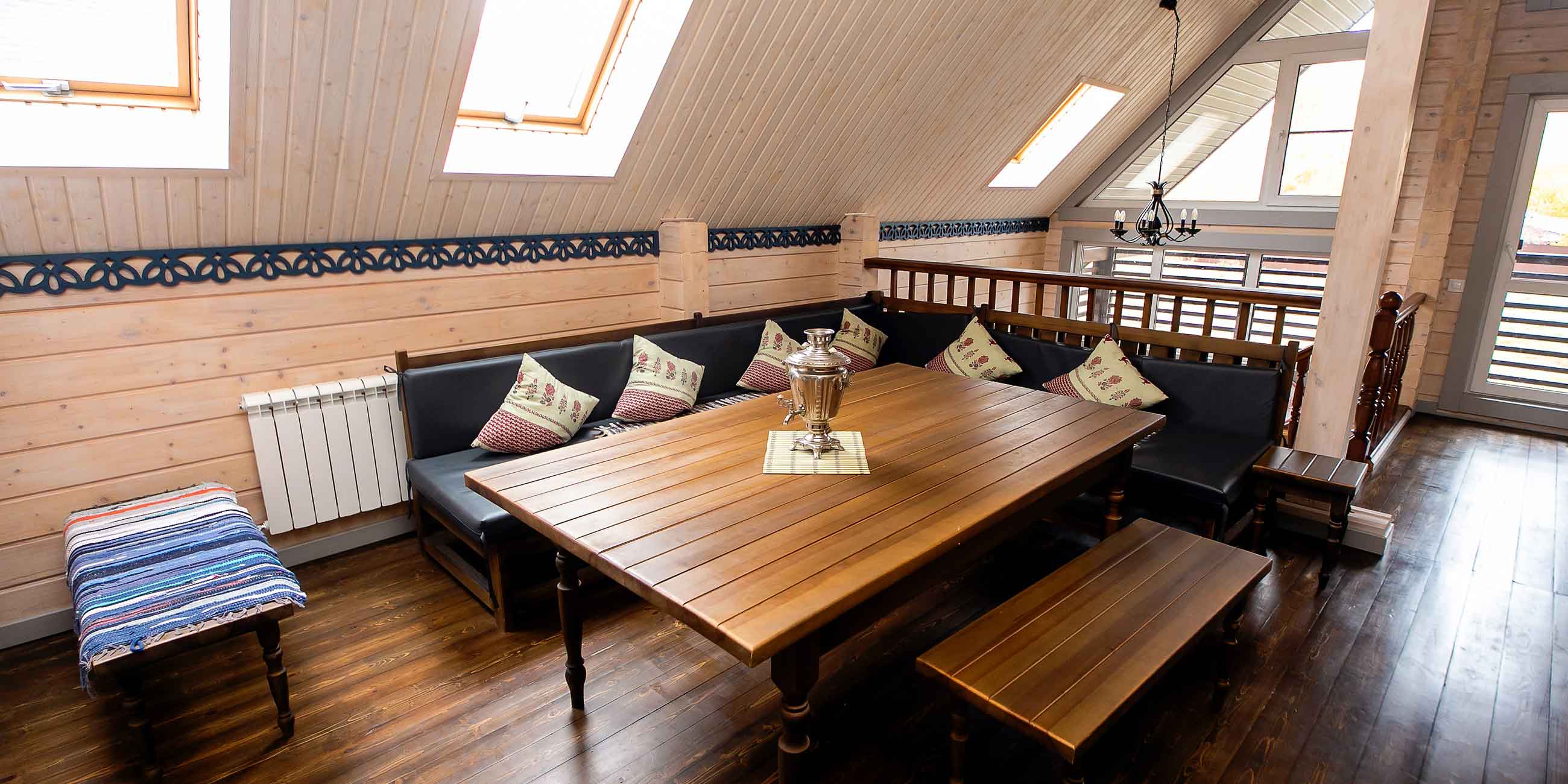 Уютный интерьер, выдержанный в пастельных тонах, создает домашнюю обстановку, чтобы было комфортно всей семье. К вашим услугам — русская парная на дровах, инфракрасная сауна и бассейн длиной пять метров.