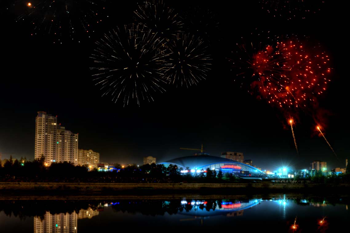 Салют в День города Челябинска обычно запускают над набережной Миасса, около памятника Столыпину. В арсенале пиротехников 15 видов фейерверков. Вспышки, водопады, сферы, матрешки, пальмы, линии с кометами, ассорти — салют можно наблюдать в течение 15 минут.