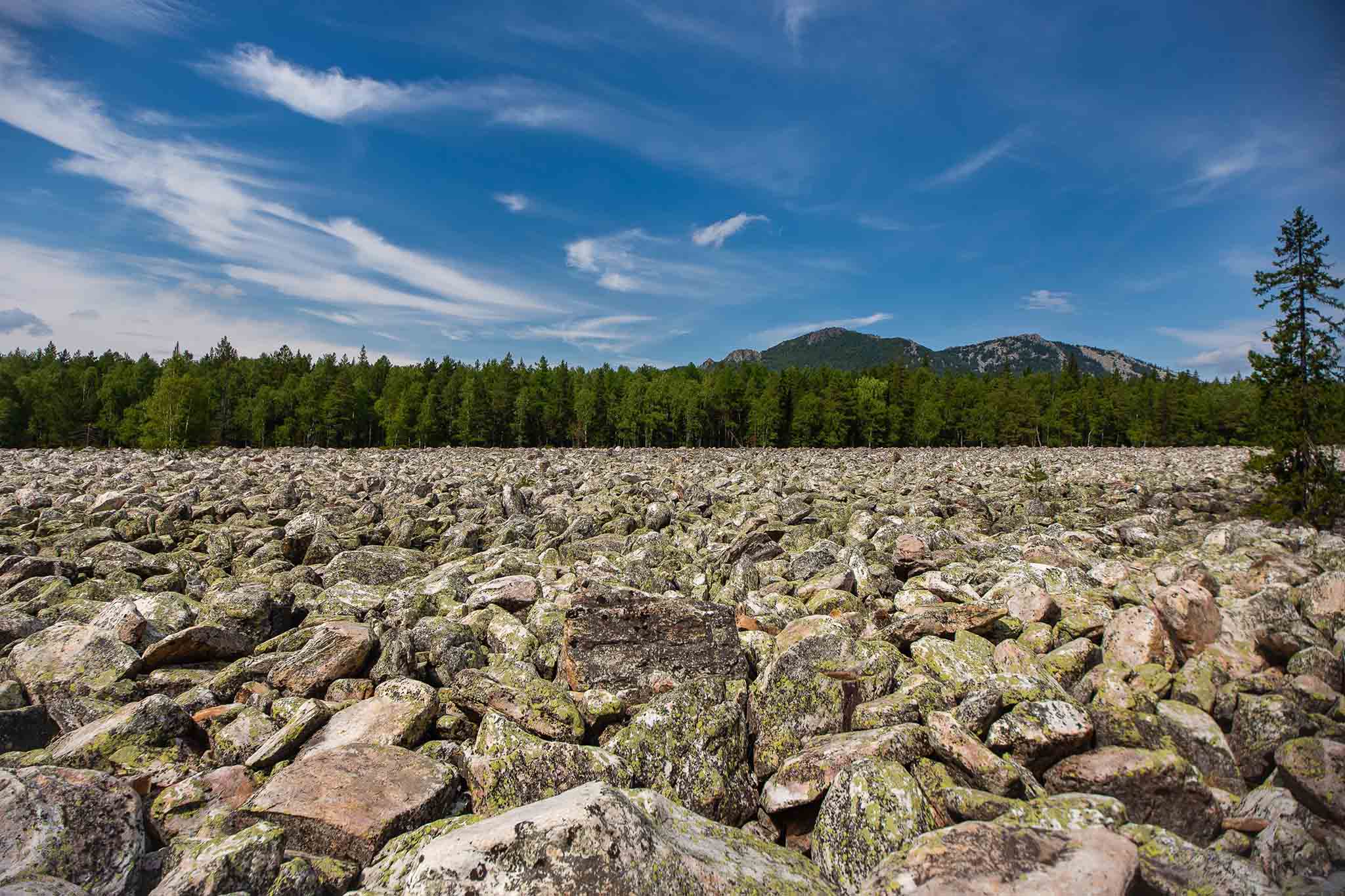 Во время последнего оледенения на Южном Урале произошло резкое похолодание. Морозное выветривание горных пород было настолько сильным, что даже самые прочные кварциты, из которых состоят горные хребты, не выдержали. Затем вода и ветер придали глыбам форму валунов. Так появились каменные реки.
