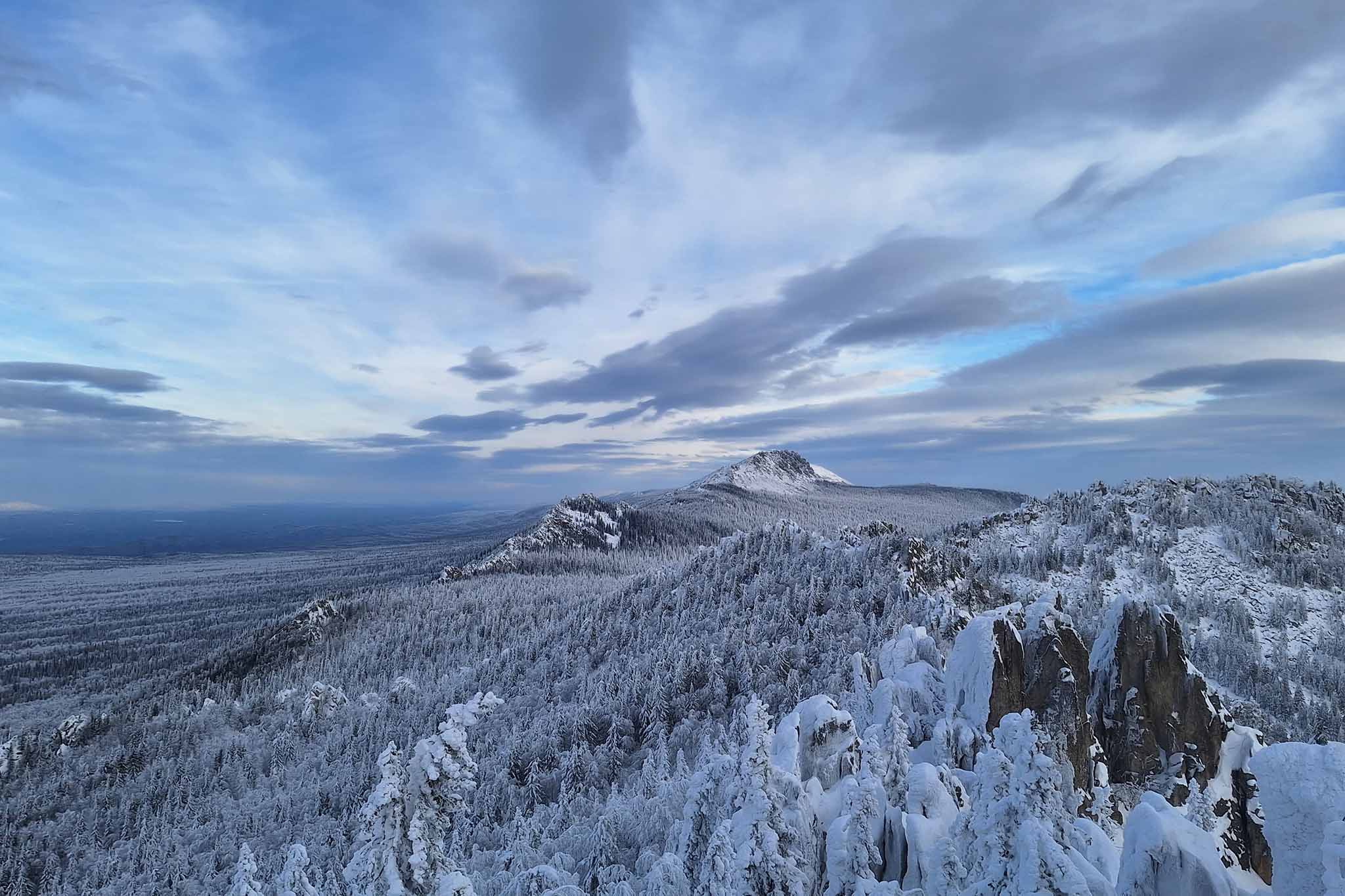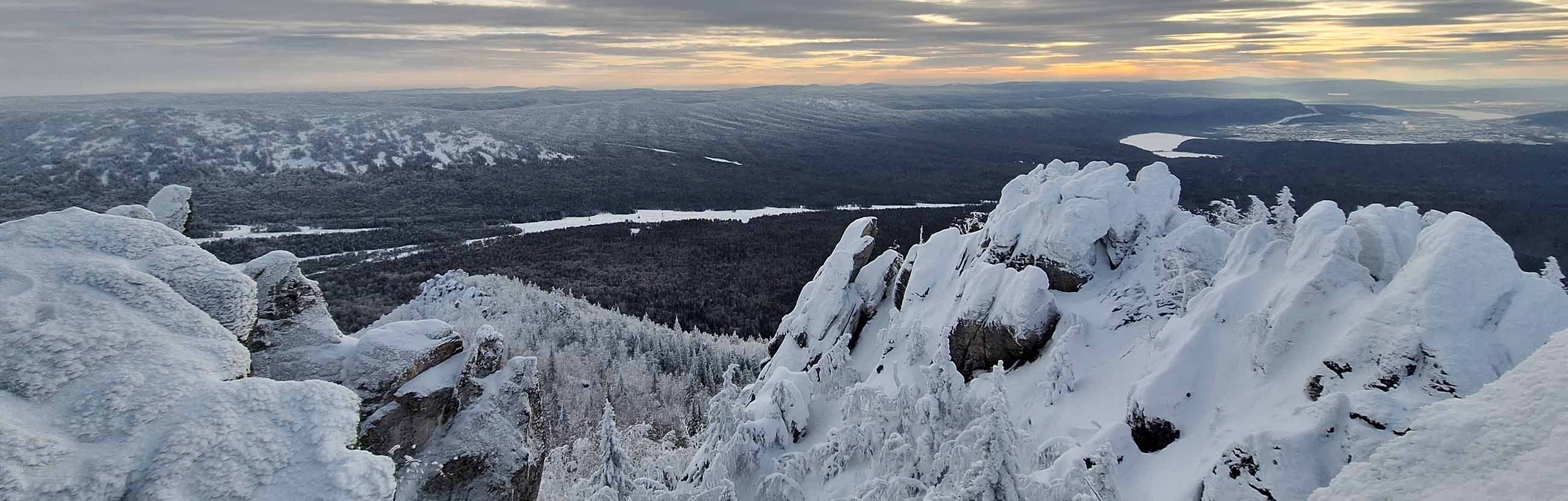 Зима превращает Таганай в сказочный мир. Реки замерзают, снег покрывает все вершины, создавая бесконечные холмы. Особая красота раскрывается на закате и рассвете, окутывая ландшафты в магические краски. Однако в некоторых частях парка температура может опускаться до -50 градусов.