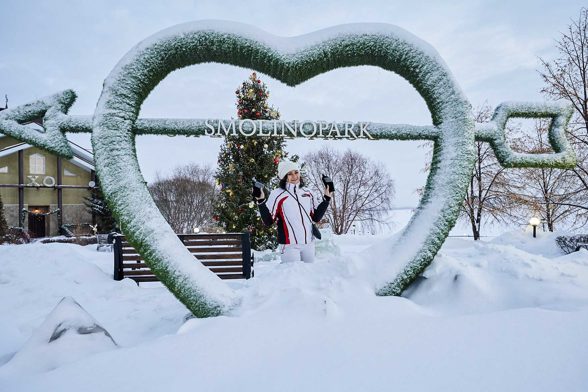 Вооружившись горячим чаем, в семь утра мы встретились возле ДС «Юность» и поехали к первой точке путешествия — отелю Смолино Парк. Там нас любезно встретили и провели небольшую экскурсию по территории, украшенной к Новому году.