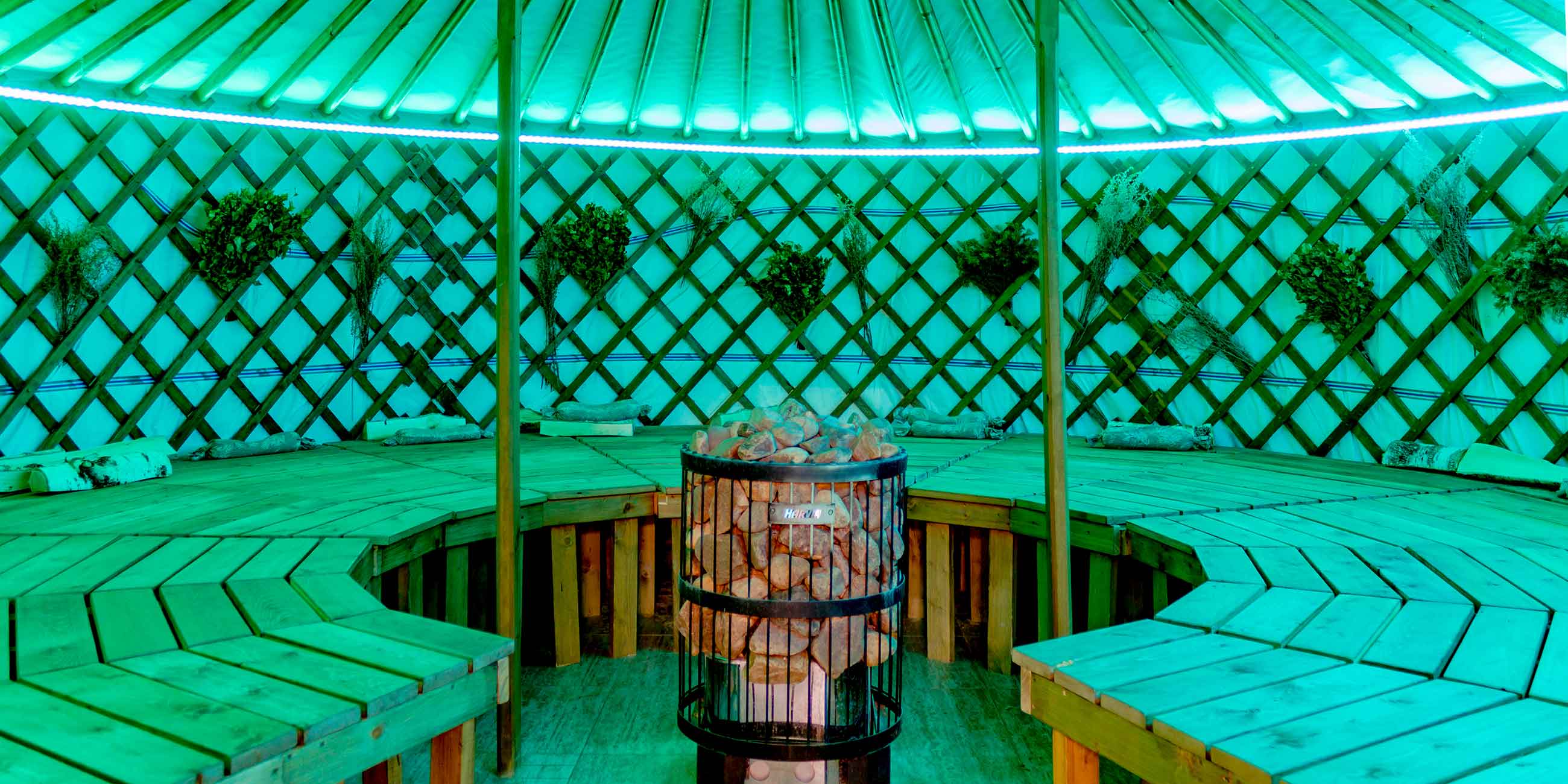 Монгольская юрта — эксклюзивная баня, в которой греются только лежа, смакуя умеренный влажный жар. На стенах юрты — ароматные веники из березы и пихты. Пар-мастер подает теплый пар гостям, работая специальным флагом.
