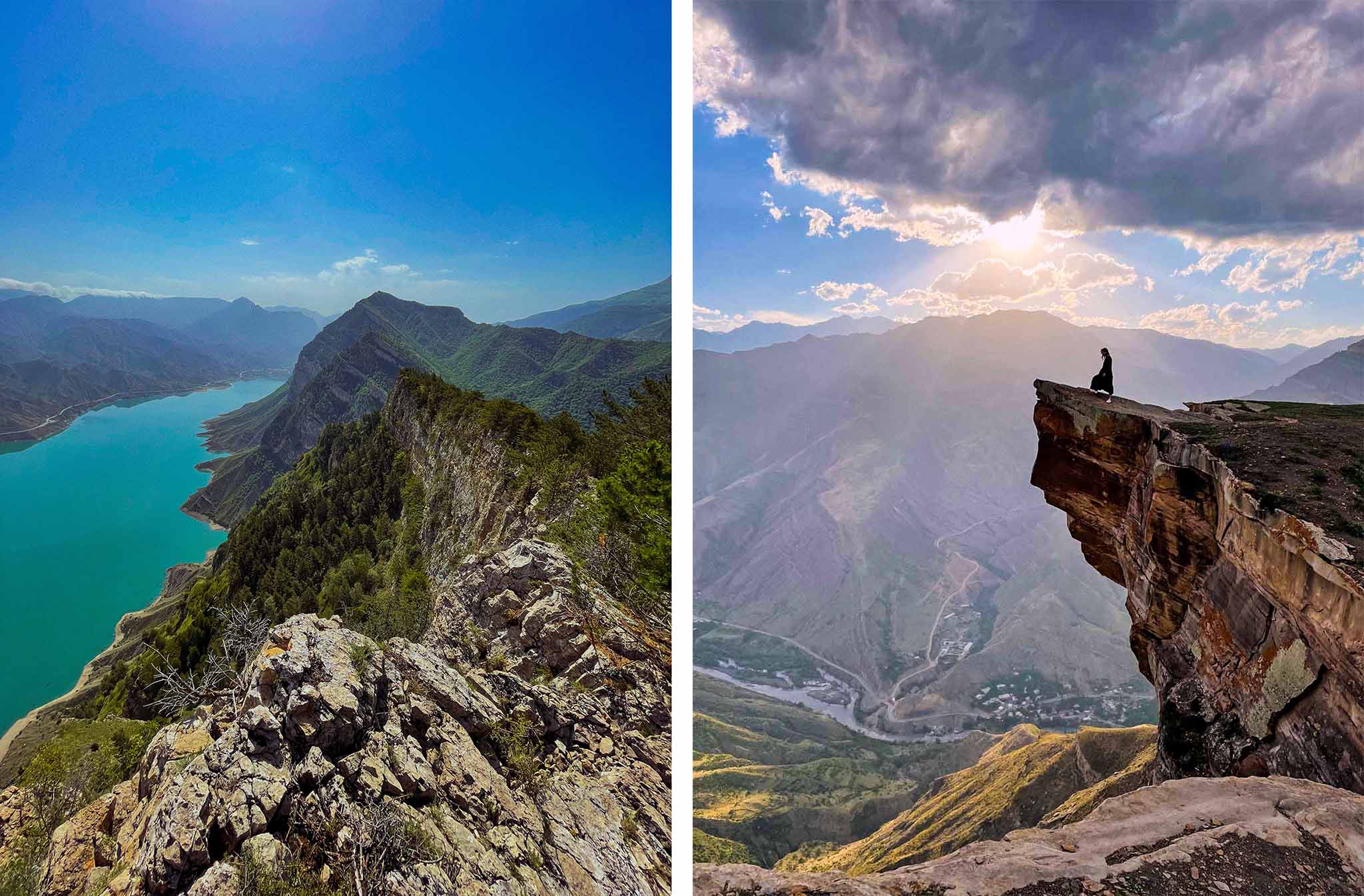 Сулакский каньон — это не одно конкретное место. Это целая вереница смотровых площадок, которые разбросаны на половине территории Дагестана. И с каждой открывается свой вид. По пути можно осмотреть несколько водохранилищ (5-10 минут остановки в пути будет достаточно), отобедать в аутентичных ресторанах и договориться об экскурсии на лодке по дну каньона. Если будете покупать экскурсию в турфирме, все 33 удовольствия уже входят в цену.