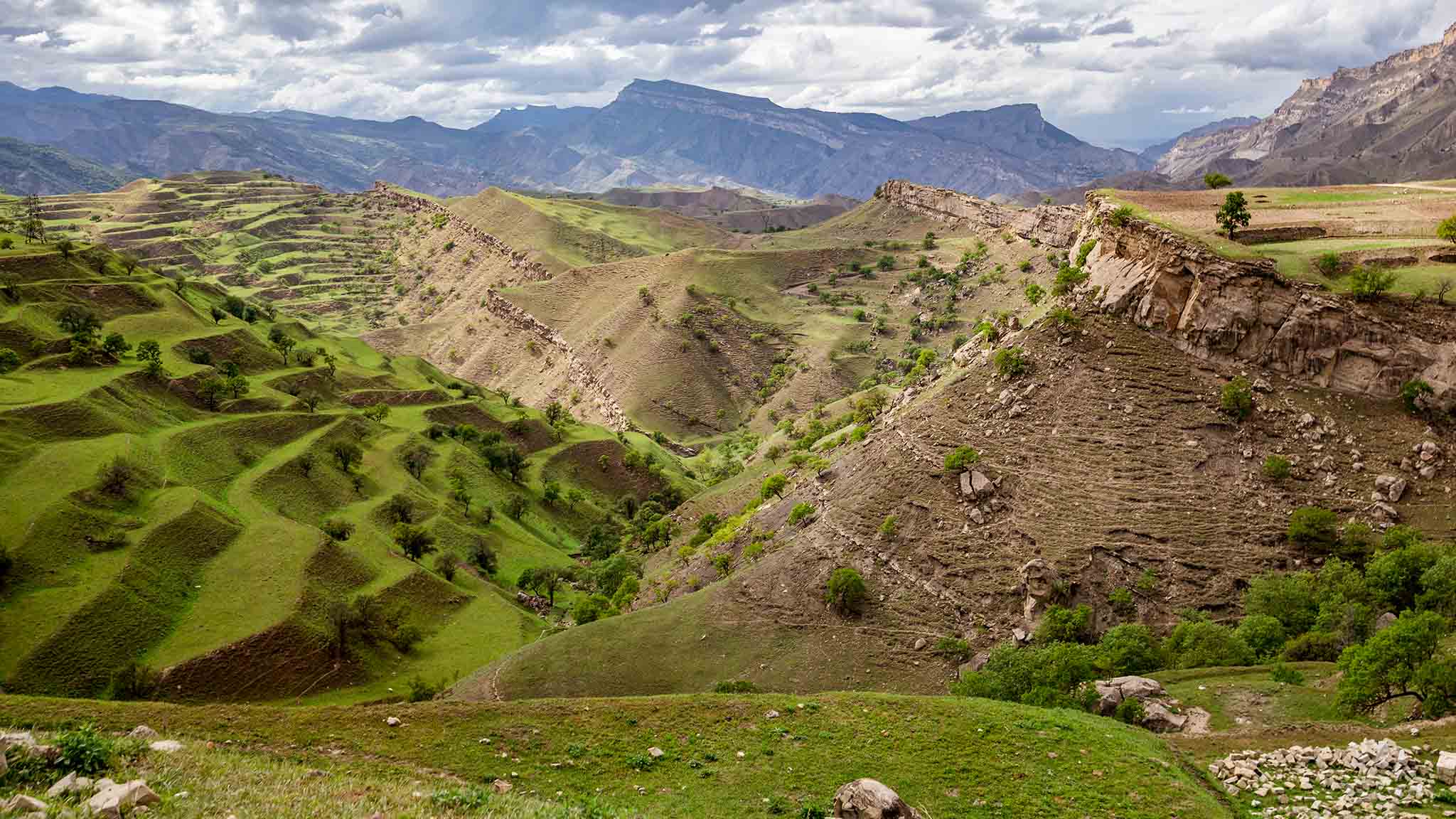 На 150 тысячах гектаров в живописных горных районах Дагестана расположились террасы. Раньше они служили земледельцам, а теперь полезны только как пастбища. В мае зеленые «волны» и «ступеньки» на склонах выглядят фантастически. Масштаб таков, что их видно даже со спутника. Дагестанские террасы не попали в список культурного наследия ЮНЕСКО, как горные террасы Бали, Китая и Перу, но они очень впечатляют и полны загадок. Гиды не сходятся в ответах на вопрос: когда и кто их строил? Одни говорят, что советские люди с использованием тяжелой техники. Другие считают, что террасам не одно тысячелетие, соотнося их с террасами майкопской культуры, датируемыми ранним бронзовым веком. Горные террасы в республике вы увидите по дороге в Хунзах, проезжая Чох, вблизи села Амузги, аулов Гоор и Старый Кахиб. Немало в республике селений, построенных по принципу террас, яркий пример — село Кубачи, знаменитое потомственными мастерами кольчуг, оружия и украшений.