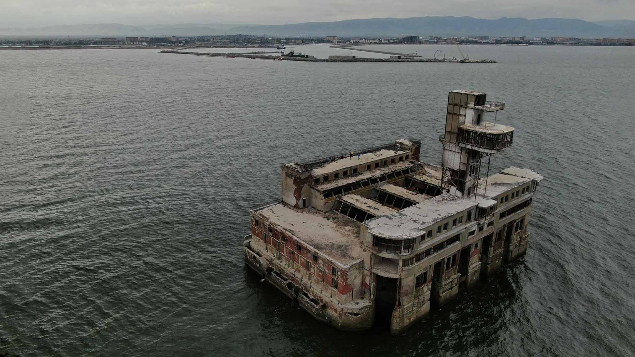 Испытательная база заброшена с 1966 года. По оценке экспертов, ее платформа могла бы эксплуатироваться сейчас, но вот надводная часть, увы, в очень плохом состоянии и продолжает разрушаться волнами Каспия. Закрытие цеха обросло легендами, а на деле причина банальная: производимые «Дагдизелем» торпеды в конце 50-х стали глубоководными, и поэтому их невозможно уже было испытывать на станции. Еще в начале этого века цех №8 охраняли и поддерживали в рабочем состоянии, а потом оборудование перевезли на сушу, и массив остался пустовать.