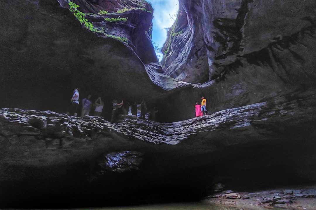 Необыкновенный подземный водопад в горной пещере Дагестана, обозначенный как природный памятник республиканского значения. Не сказать, что место очень популярное, но посетивших Салту туристов локация приводит в дикий восторг. Водопад включают в туры по Дагестану нечасто из-за сложной дороги, которая лежит по потрясающей Салтинской теснине. Дух захватывает от 500-метровых стен каньона. Когда ущелье расширяется в конце пути, образует плоскую и вытянутую, как инопланетный корабль, пещеру. Здесь шумят салтинские воды, срываясь из круглого отверстия в потолке пещеры с высоты в семь этажей. Даже звучит впечатляюще, а выглядит подземное чудо еще более невероятно.