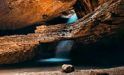 Это одно из самых странных мест в Дагестане: течет себе река Багдакули через живописный Кудалинский каньон, а перед селом Салта — раз и пропадает! На самом деле вода уходит под землю и падает с 20-метровой высоты через отверстие в сплошной скале, образуя чистый подземный бассейн.