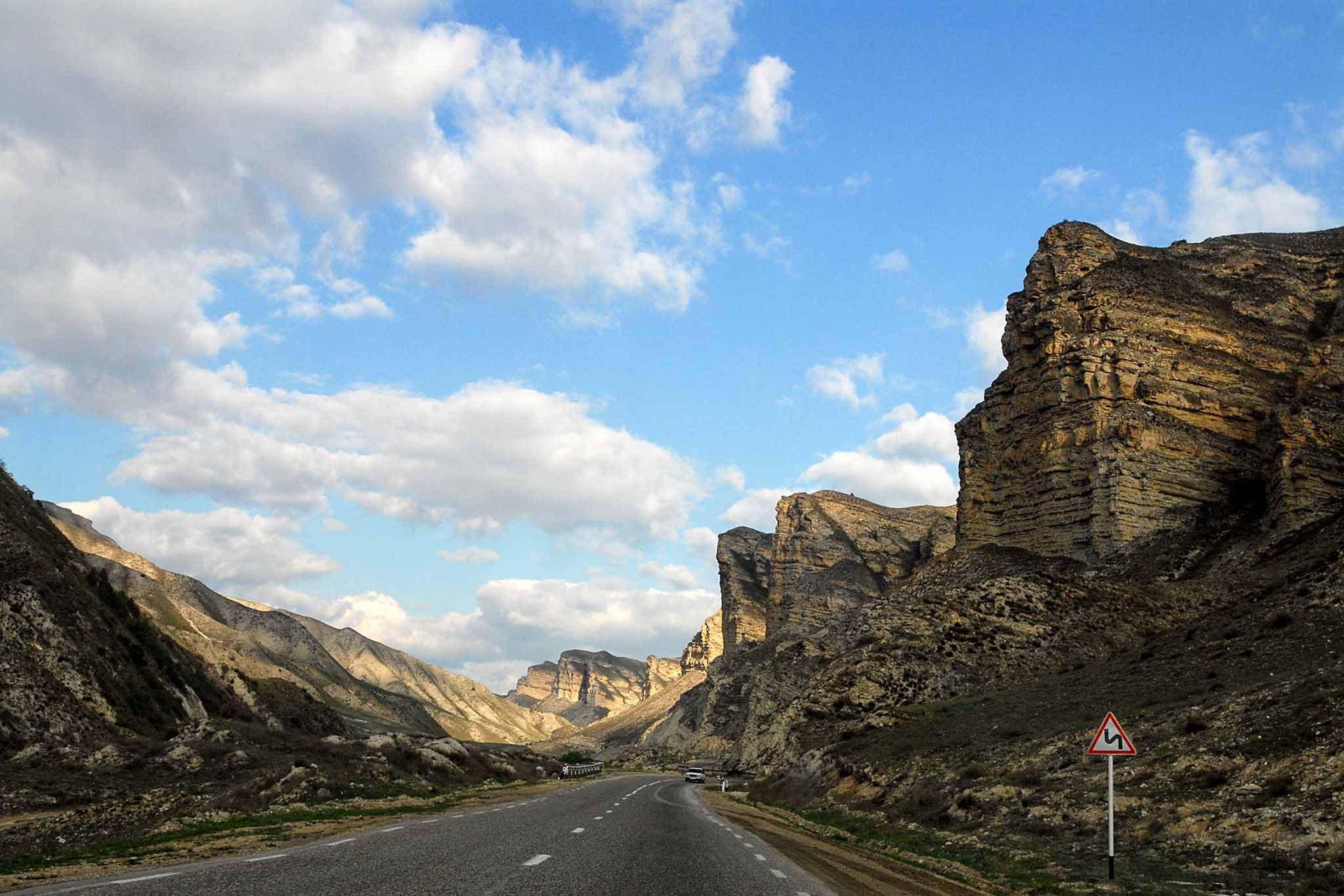 Рассчитайте время поездки так, чтобы последний участок преодолеть в дневное время. Вам предстоит многочасовой марш-бросок. Если ожидаете в пути увидеть горы и прокатиться по серпантину, то разочаруем — горный Дагестан начинается за Махачкалой. Эта же дорога обычная, зато по большей части новая и отремонтированная, но встречаются и «экстремальные» отрезки с ухабами. Путь пролегает через Комсомольский, Улан-хол и Кизляр.