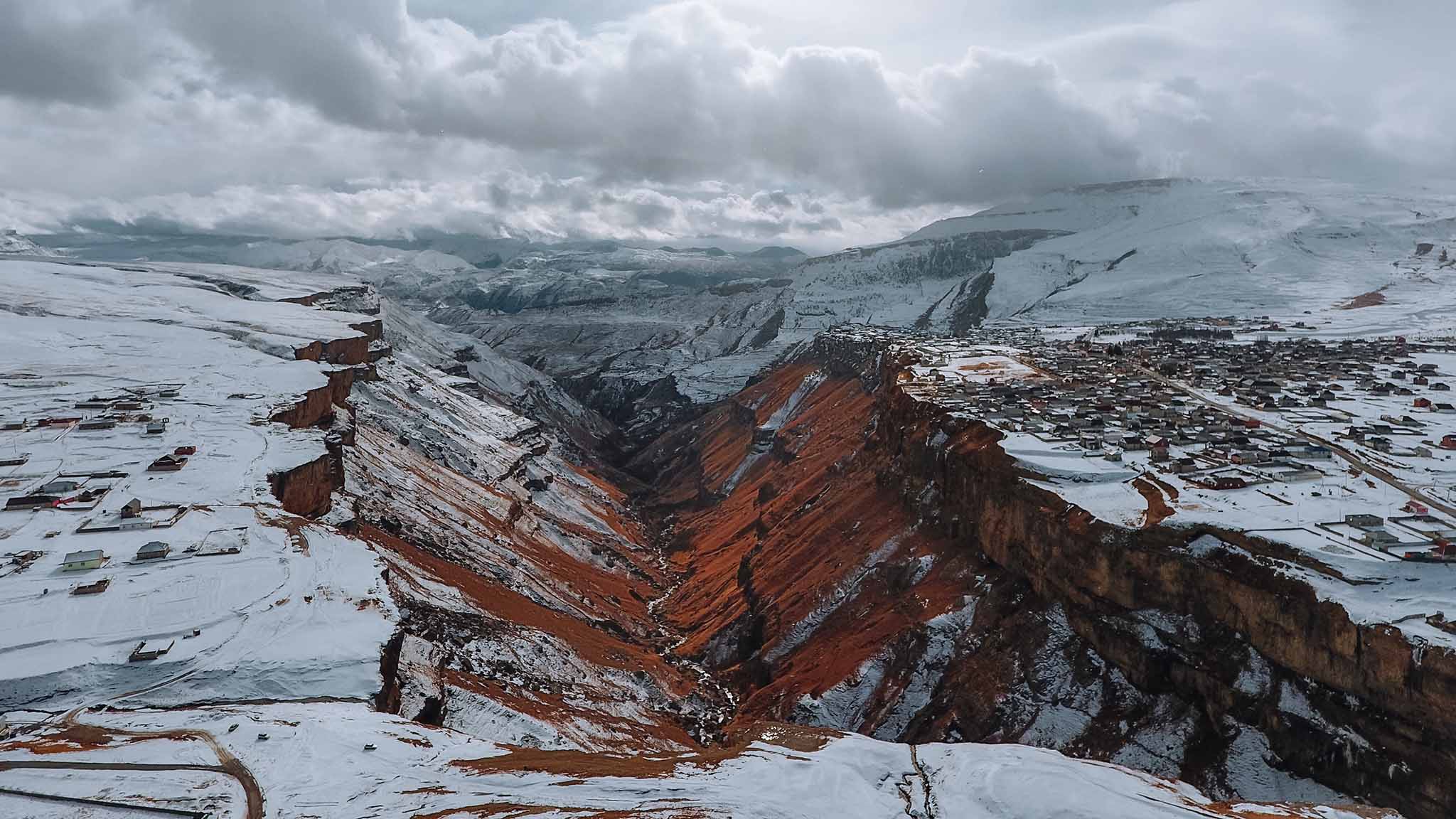 Сулакский каньон уже стал визитной карточкой Дагестана — фото бирюзовой реки с высоты есть, кажется, чуть ли не в половине инстаграмов страны. А как насчет того, чтобы посмотреть на главную достопримечательность республики зимой? На вершинах гор в декабре лежит снег, что делает и без того фантастический пейзаж еще более нереальным. Но река Сулак не замерзает, так что та самая бирюзовая вода никуда не денется.