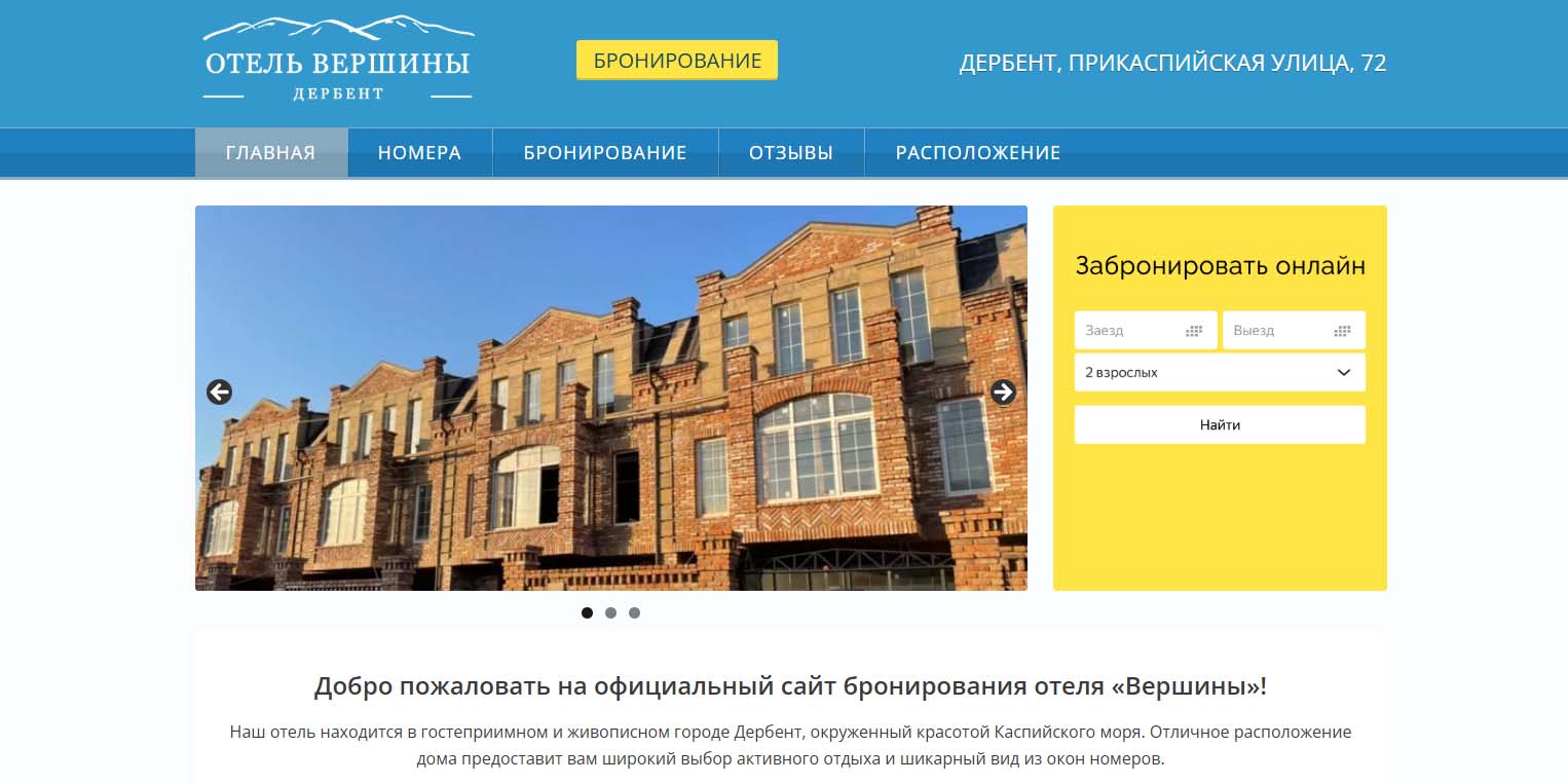 Хороший выбор для туристов, которые любят компактные современные отели, — гостиница на третьей береговой линии, в паре километров от центра города. Для гостей подготовлены 11 номеров с большими кроватями, бесплатным wi-fi, электрическим чайником и кухонным уголком. Если приехали на машине, то сможете оставить ее на парковке. Туристам, которые добираются до Дербента на общественном транспорте, доступен трансфер.