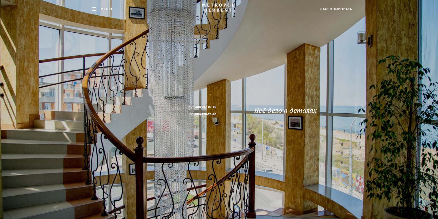 Дербентскую городскую гостиницу украшает светлая винтовая лестница со стильной люстрой и фотографии старого города, а из окон открываются отличные виды на Каспийское море. В уютных номерах — стандарт, улучшенных и люксах — постояльцев ждут гостиные уголки, кондиционеры, мягкая мебель и письменные столы. Каждое утро в кофейне отеля подают завтраки по меню или континентальные завтраки. Большим спросом пользуются комнаты с видом на побережье.