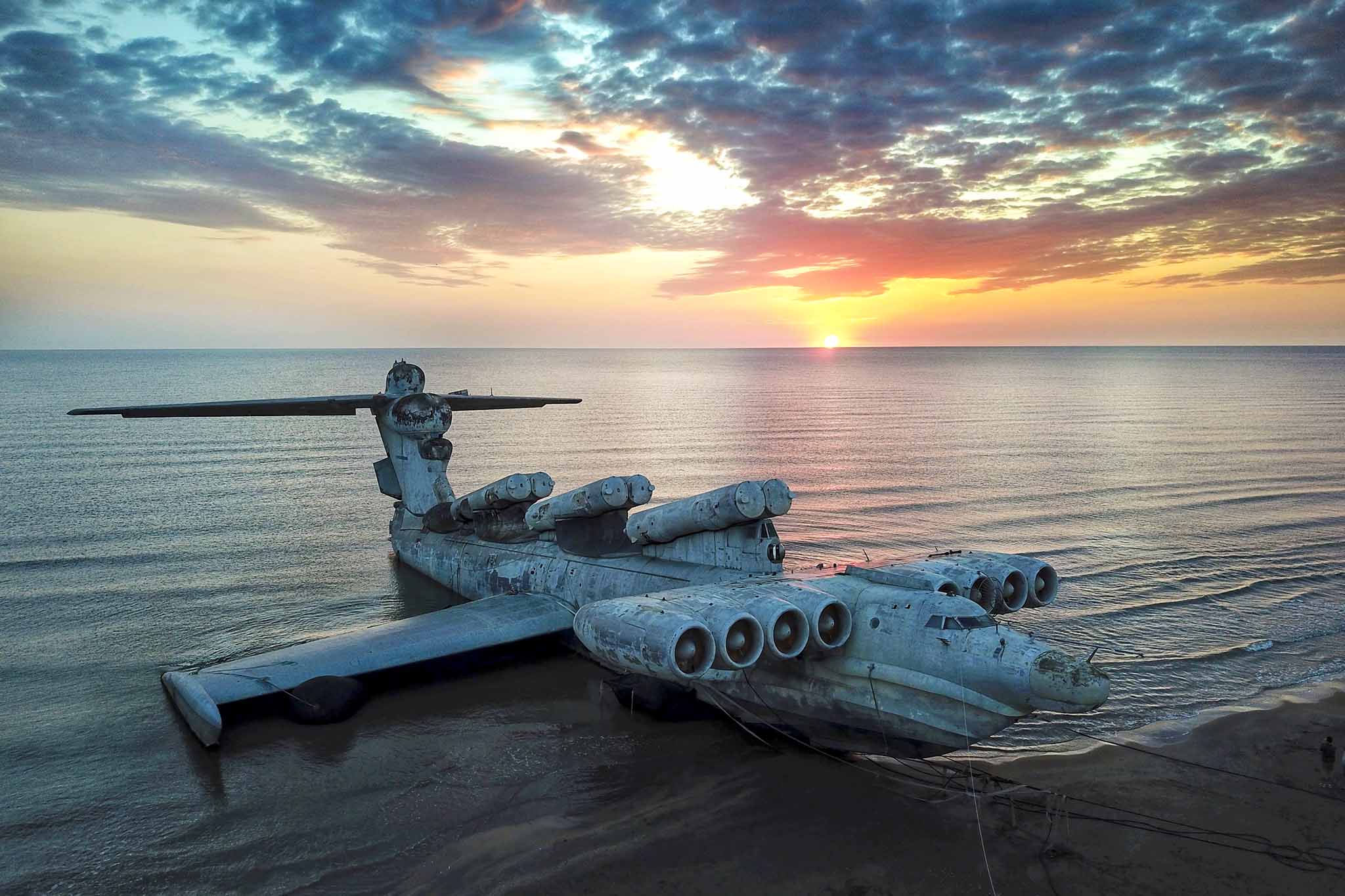 Разрекламированный гидами самолет-корабль лежит на пляже в 19 км от Дербента, в районе села Авадан. Ноябрь — отличное время для фото на его фоне, потому что туристов уже нет. Экраноплан Лунь по факту находится на территории строящегося парка военной техники, о чем с первого взгляда и не скажешь, потому что других экспонатов на берегу пока нет.