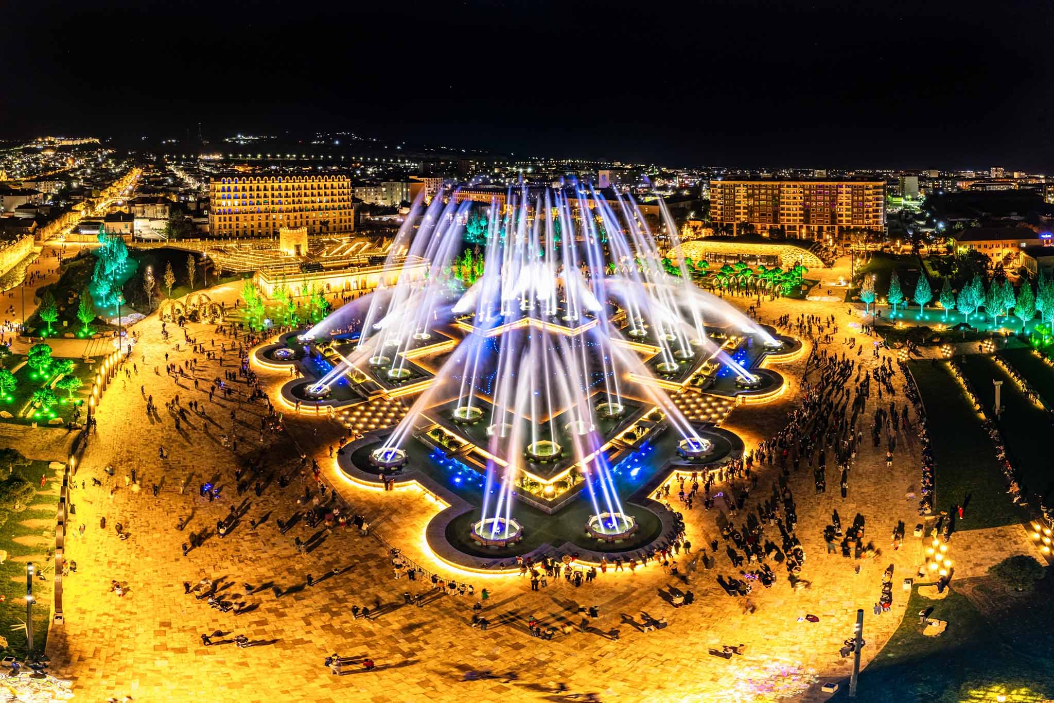 Это рукотворное чудо из природного камня с подземным музеем занимает почти 5000 кв.м. Переливающиеся цветами радуги струи воды выстреливают в небо на 30 метров. Дербентский фонтан поражает масштабом: тысяча световых прожекторов, две тысячи форсунок для воды, игра голографических фигур на гигантском водном экране.