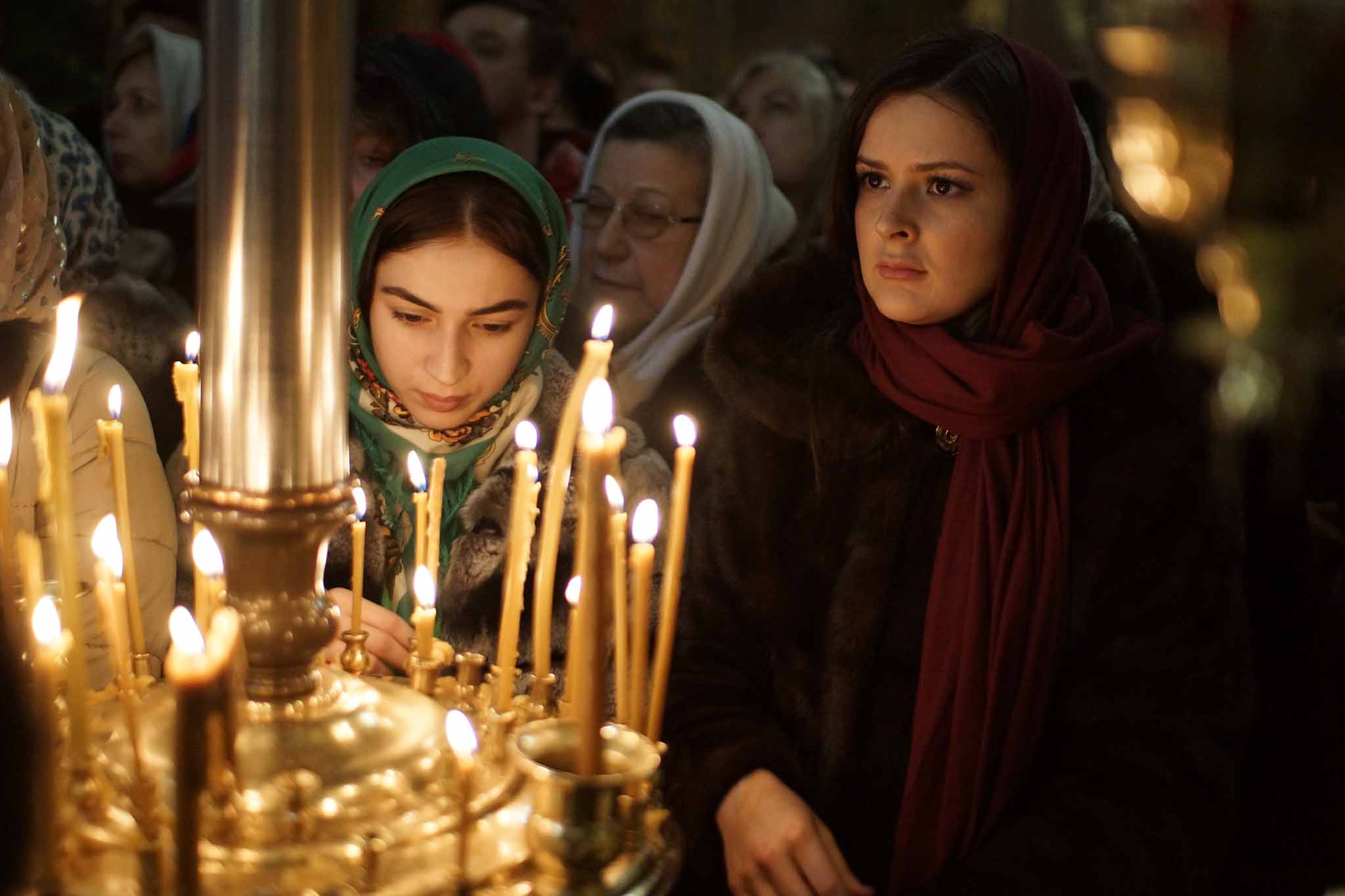 В ночь на 7 января в дивеевских церквях идут ночные богослужения, в том числе в храме Рождества Христова. Но поскольку эта церковь совсем небольшая, а туристов в этот период много, внутри остаются только монахини.