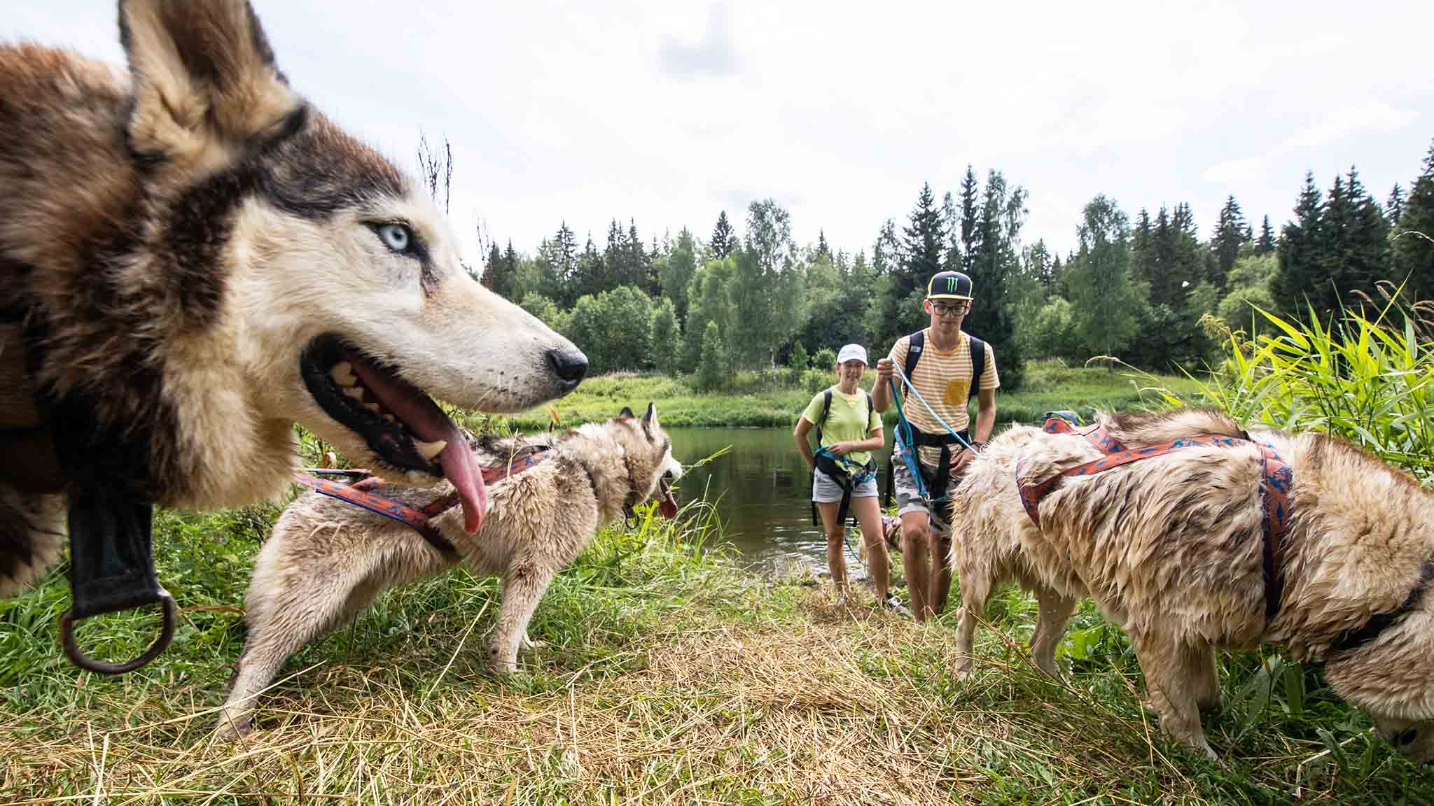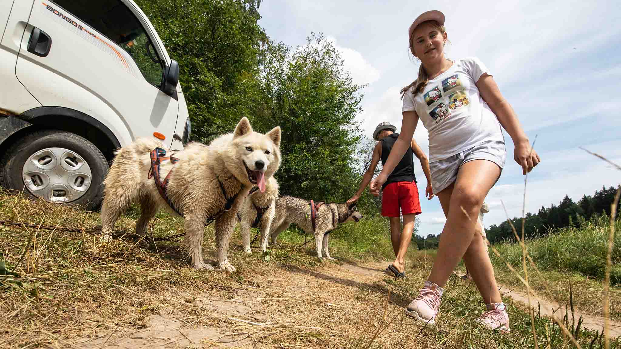 — Сначала будет сложно, собаки будут сильно тянуть, — предупреждает инструктор Денис. — Сейчас пойдем к реке, они искупаются и станут поспокойнее.