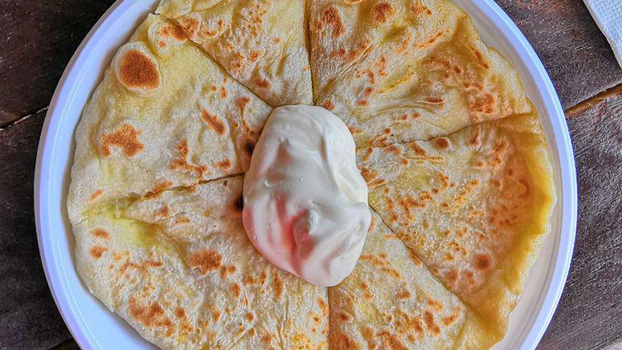 Главное и самое любимое блюдо всех лыжников и туристов. Хычин — это тонкая лепешка с начинкой. А дальше есть множество вариантов: печеные или жареные, с сыром, мясом, творогом, картошкой, зеленью. Подают хычины горячими с маслом или сметаной. Важно при заказе рассчитать силы — в среднем хычин весит 450 граммов. Стоимость около 120 рублей.