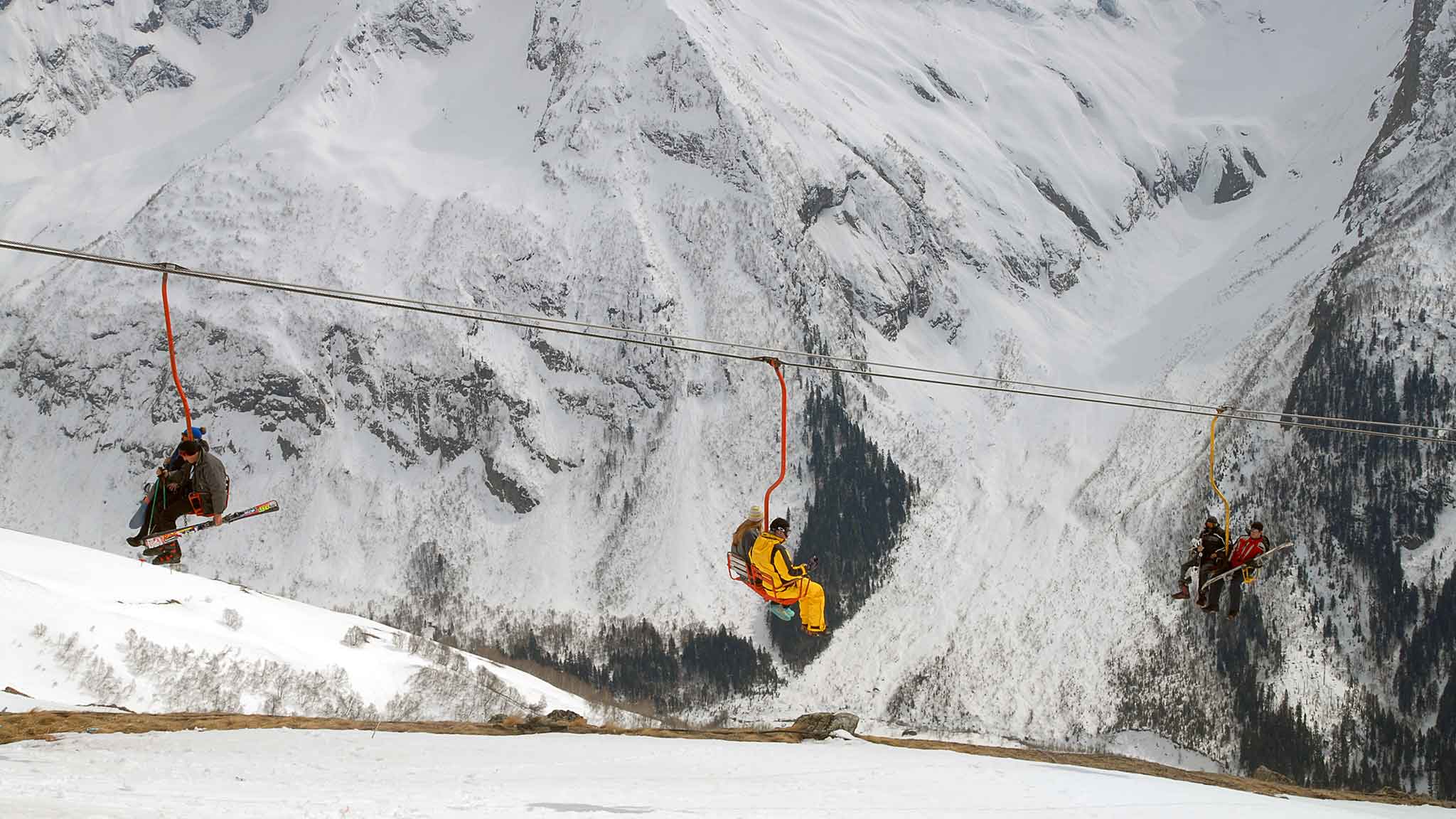 Домбайская поляна, где на высоте 1600 метров находится знаменитый курортный поселок, расположилась на юге красивейшего Тебердинского национального парка в Карачаево-Черкесии. И хотя протяженность самого поселка чуть больше километра, для туристов здесь есть все: более 120 гостиниц, порядка 80 кафе и ресторанов, альплагеря, базар и пункты проката. На высоту от 1750 до 3200 метров отдыхающих поднимают канатно-кресельные подъемники, гондольная, шестикресельная и маятниковая канатки.