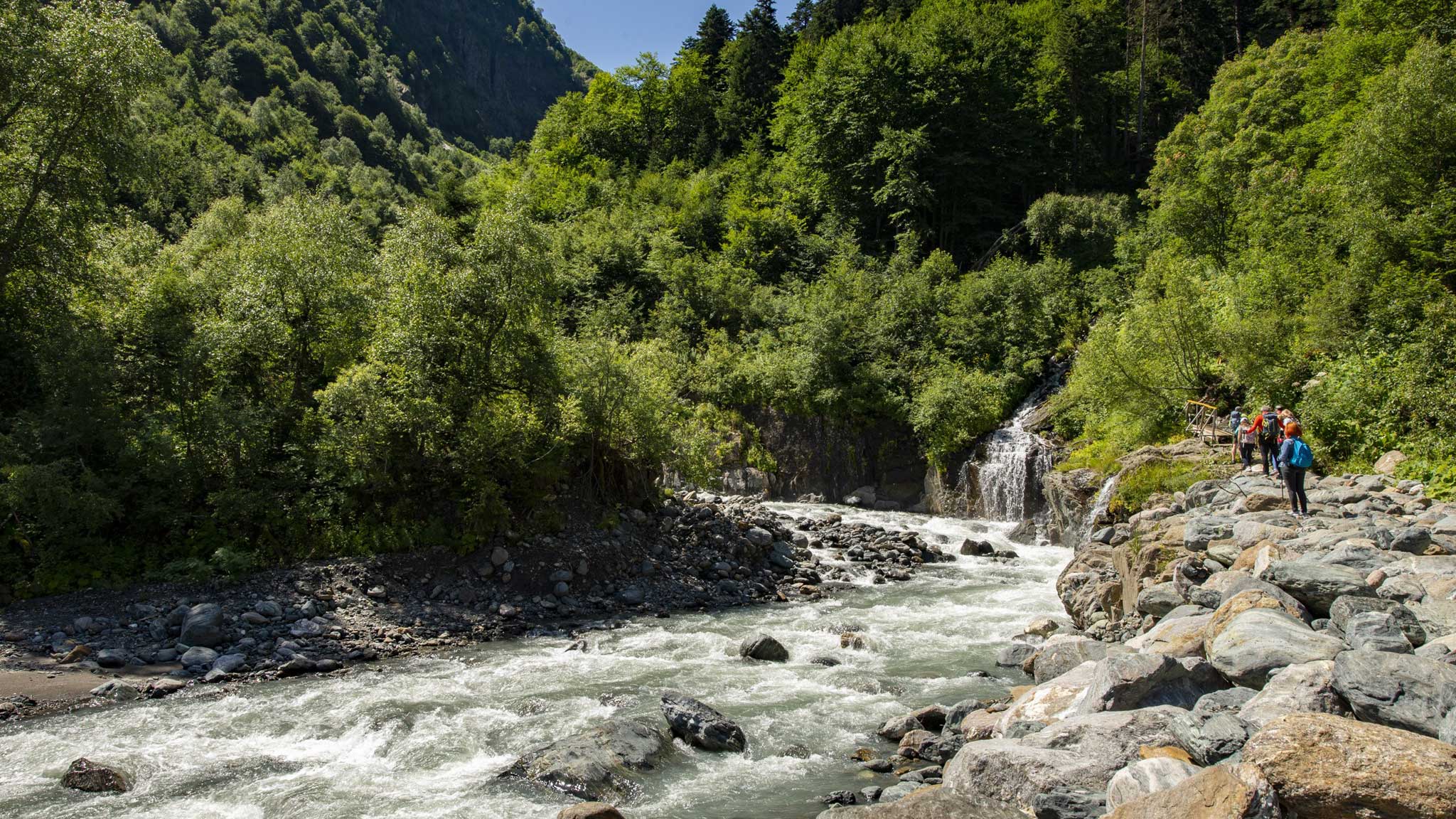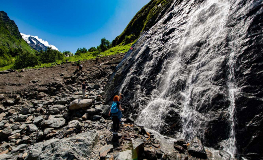 Пеший маршрут сюда от Домбайской поляны займет несколько часов, и сразу вас предупредим: дорога будет непростой. Хотя расстояние всего около 4,5 километров, но оборудованной дороги к водопадам нет. В ним ведут узкие тропки, порой затерянные в камнях. Пробираться по ним, да еще вверх — задача не из простых.