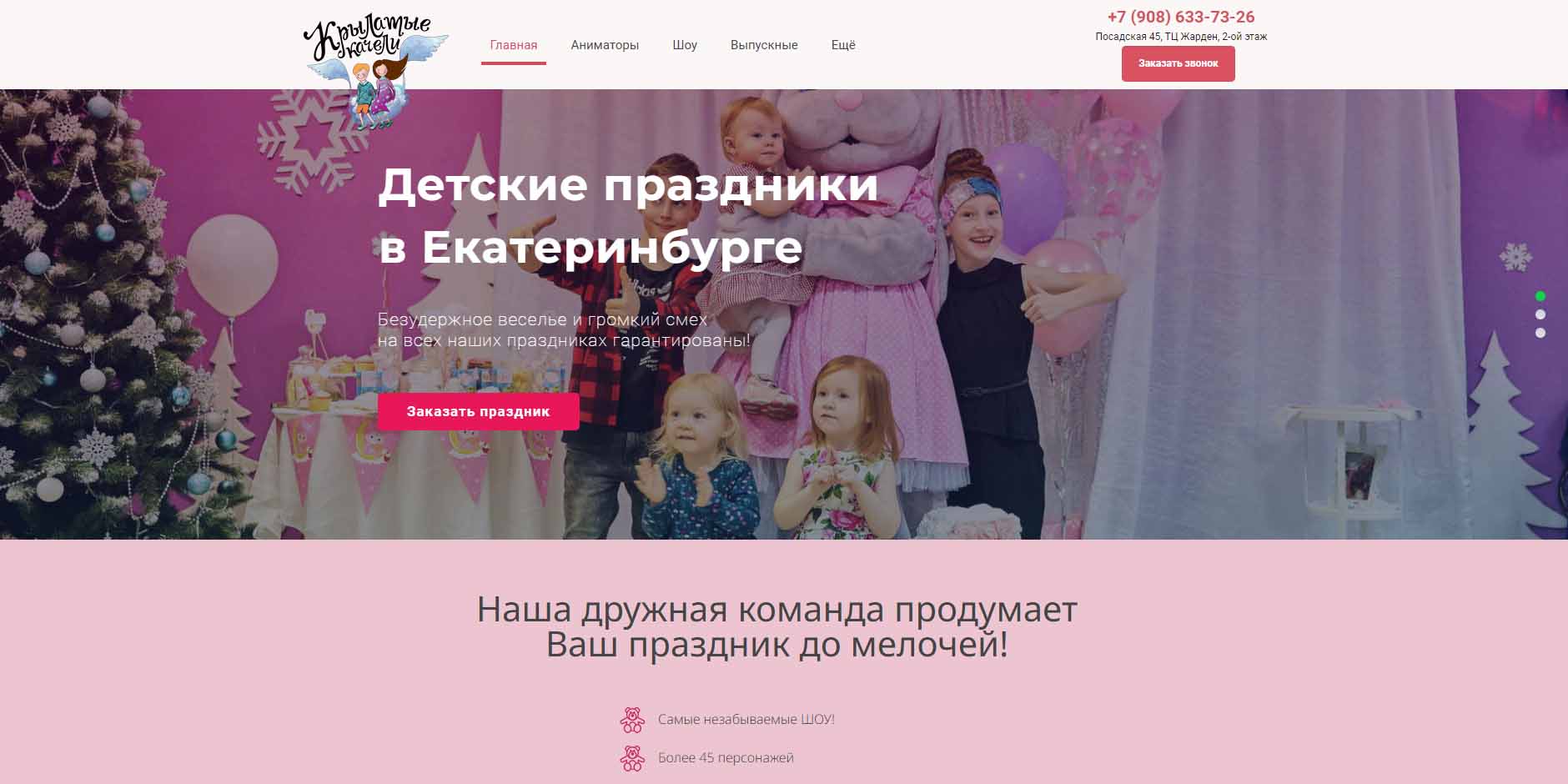 Студия детских праздников предлагает организацию дня рождения для ребят любого возраста. Аниматоры подготовят интересную программу с конкурсами, памятными подарками и яркими персонажами. В студии можно провести как мероприятие для большой компании, так и для узкого круга близких друзей, а главное — воплотить в жизнь необычные и оригинальные задумки как детей, так и взрослых. В качестве дополнительных услуг предлагают аквагрим и профессионального фокусника. Кроме того, можно заказать бумажную дискотеку, шоу мыльные пузырей, поролоновое шоу или шоу роботов.