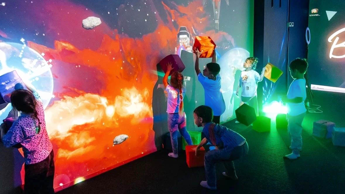 Пространство волшебных проекций, которые реагируют на касания и движения, — по-настоящему фантастический виртуальный мир, где происходят сражения с пиратами и роботами, чудовищами и драконами. В интерактивном парке оживают персонажи любимых компьютерных игр или только что созданные герои детских рисунков!