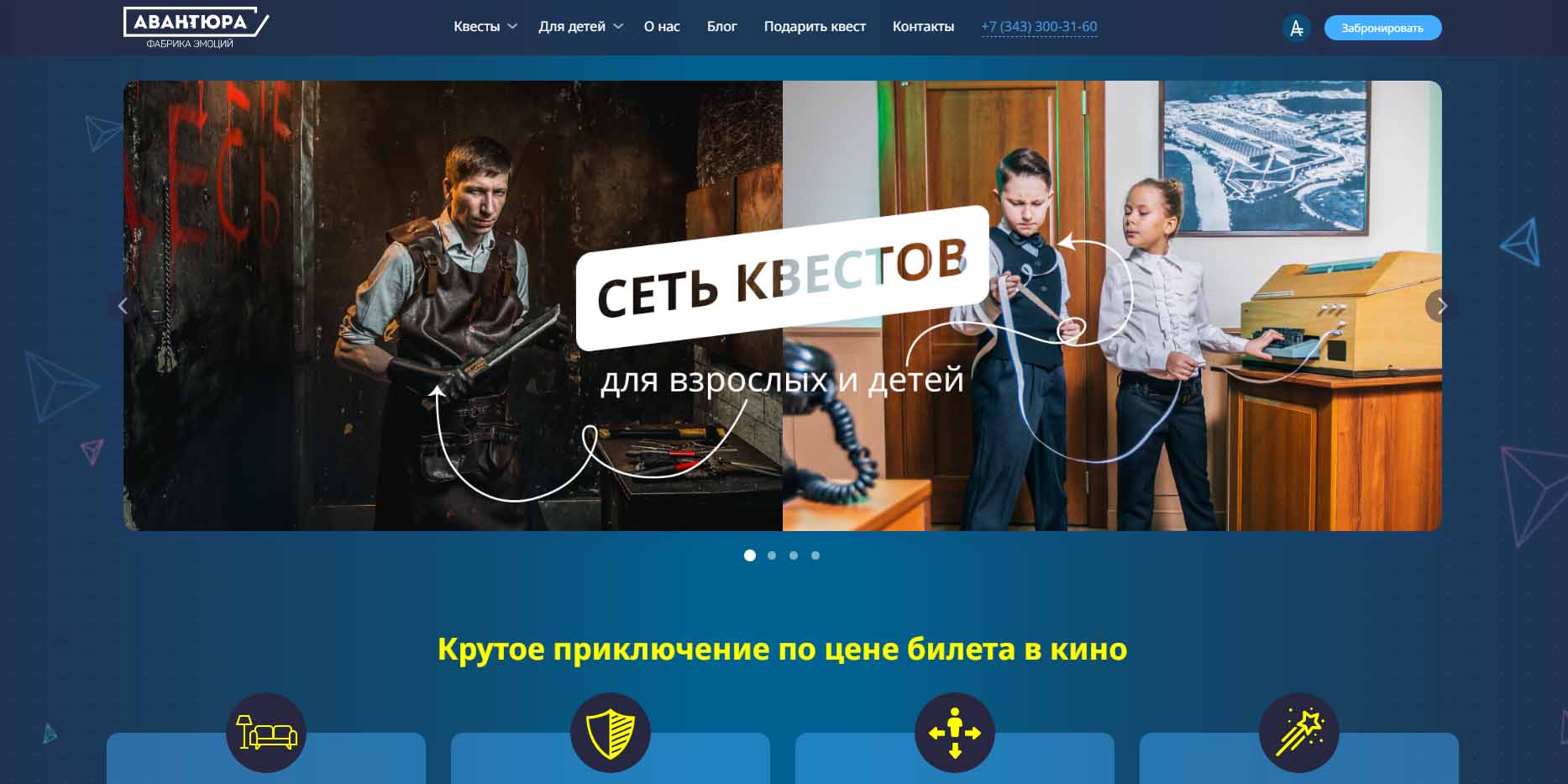 В арсенале фабрики эмоций более 25 сюжетов квестов различных жанров и уровня сложности. Большинство игр можно проходить с 6 лет вместе с аниматором. Для самостоятельного прохождения квесты доступны детям от 12 лет. Ребята перевоплотятся в черепашек-ниндзя, героев Гарри Поттера, пиратов Карибского моря и других любимых персонажей. После квеста для именинника и его друзей организуют торжество в отдельной гостевой комнате. Игры, музыка, танцы, поздравления, аниматоры и фотографы — по желанию можно выбрать любые дополнительные услуги.