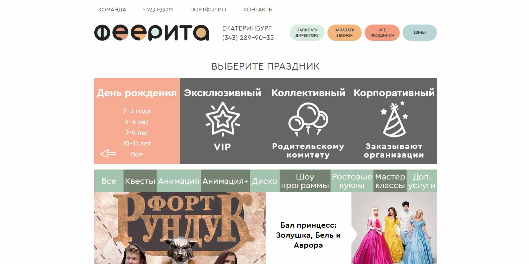 В чудо-доме «Феерита» можно вместе с Алисой оказаться в волшебной стране, познакомиться с веселыми троллями Цветаном и Розочкой, поиграть в активные игры с персонажами мультфильма «Три кота» или спасти город от злодеев. Программы проведения детского праздника имеют музыкальное сопровождение и рассчитаны на разный возраст. Ко дню рождения ребенка можно заказать дополнительные услуги: познавательные шоу-программы, зажигательные дискотеки, оригинальные фуршеты, увлекательные мастер-классы, интересные квесты и другое.