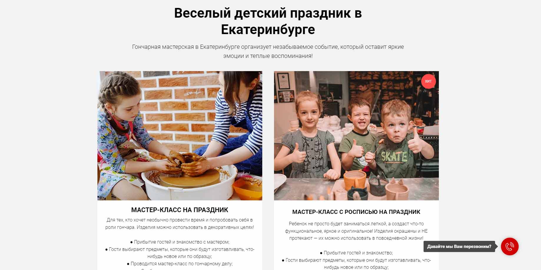 В мастерской именинник и его друзья смогут попробовать себя в роли гончара. Ребята сами придумают дизайн, фактуру и цвет будущего изделия, а если идей нет — детям помогут опытные керамисты. Праздничный мастер-класс подойдет для гостей от 3 лет, а также будет интересен их родителям. После создания изделия останется время для чаепития и поздравлений. Дополнительно в студию можно пригласить ведущего или аниматора, устроить конкурсы или потанцевать. С собой можно принести торт, закуски, фрукты и напитки.