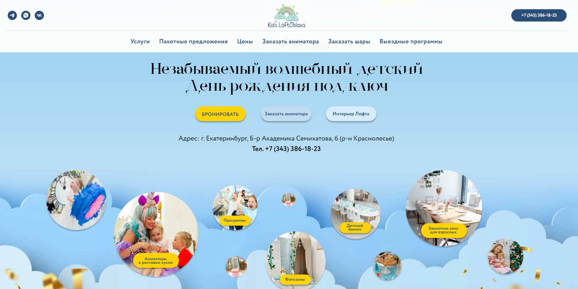 Для проведения детского дня рождения клуб предлагает познавательно-развлекательные программы, отдельное внимание уделяя развитию творческого начала в ребенке. Это уже готовые мастер-классы для девочек и мальчиков, интерактивные спектакли и квесты или праздники «под ключ». У центра есть собственное помещение площадью 200 квадратных метров с отдельными комнатами для представления, застолья и развлечений с игровым оборудованием и игрушками для детей разного возраста и темперамента. Специалисты центра при необходимости работают на разных площадках города.