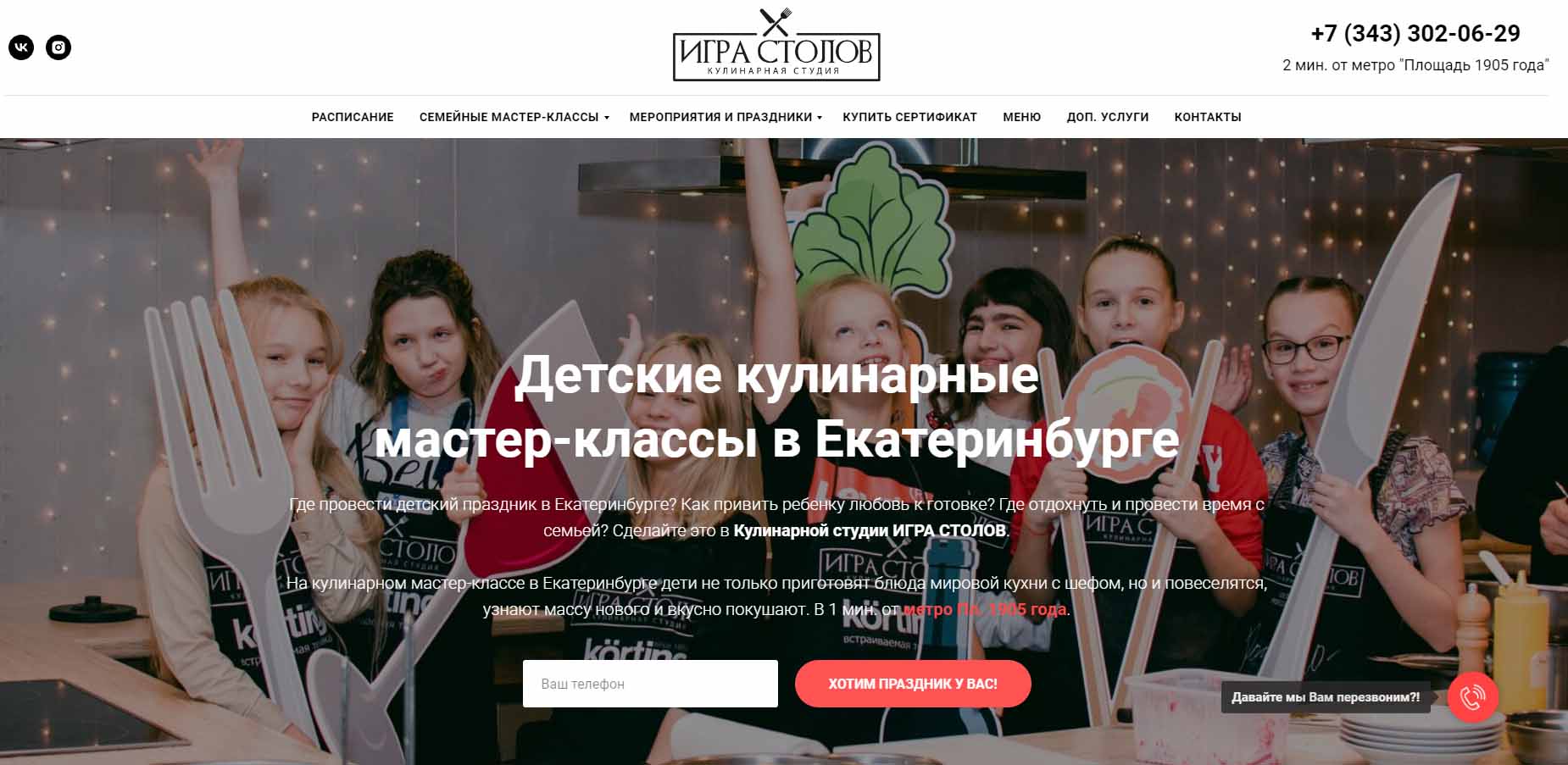 На кулинарном мастер-классе в студии «Игра столов» именинник и его друзья приготовят блюда мировой кухни с шефом, узнают массу нового, а затем вкусно поедят. Ребята не только познакомятся с рецептами и секретами приготовления трех блюд, но и от души повеселятся. Детский праздник включает в себя развлекательную программу, праздничный банкет и немного времени для танцев и общения. Весь процесс проходит под присмотром профессиональных поваров-ведущих, поэтому взрослые по желанию могут либо присоединиться к детям, либо провести время в отдельной комнате. Праздничный мастер-класс подходит для детей от 5 лет и рассчитан на 2-60 гостей. С собой можно принести фрукты или торт, а также устроить конкурсы, дискотеку или шоу с аниматорами.