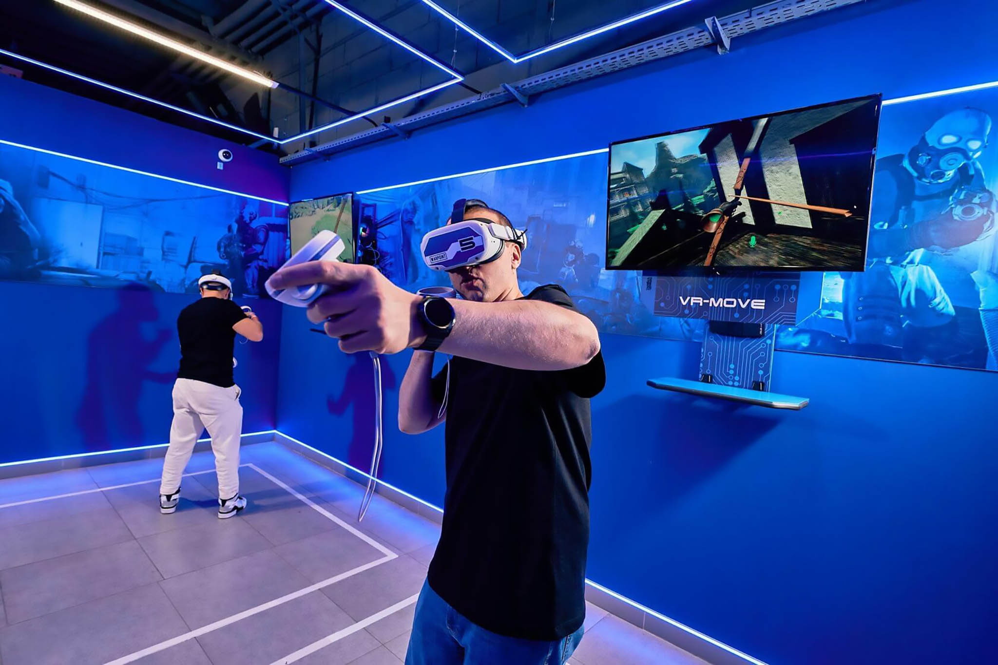 Надев VR-очки здесь можно погрузиться в различные цифровые миры. Именинник и гости спасают мир от зомби-апокалипсиса, сражаются с невиданным чудовищем. На выбор есть несколько жанров игры: фэнтези, квесты, шутеры. Организаторы праздников могут украсить площадку, подготовить музыкальное оформление. Скучать не придется и тем, кто ждет своего выхода на кибер-поединок — они могут комфортно расположиться в лаундж-зоне.
