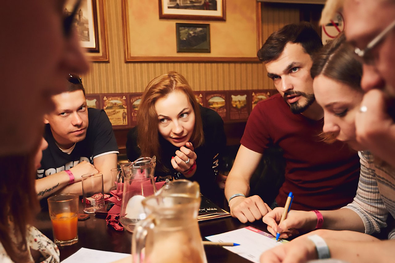 Тем, кто любит интеллектуальные игры и викторины такая классическая атмосфера придется по вкусу. Набор вопросов для участников может касаться как популярных мультфильмов, так и исторических периодов. Иногда все задания превращаются в музыкальную вечеринку. Здесь участникам поможет логика, эрудиция и немного удачи. Организаторы готовы собрать мероприятие под заказ. Достаточно зарегистрировать команду. Сами игры проходят в разных барных локациях города.