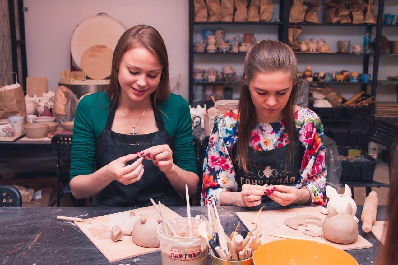 Работа за гончарным кругом — это не только свобода творчества и арт-терапия, но и красота, созданная своими руками — подсвечники, посуда, милые фигурки. В студию можно пригласить до 33 гостей, принести еду и напитки.