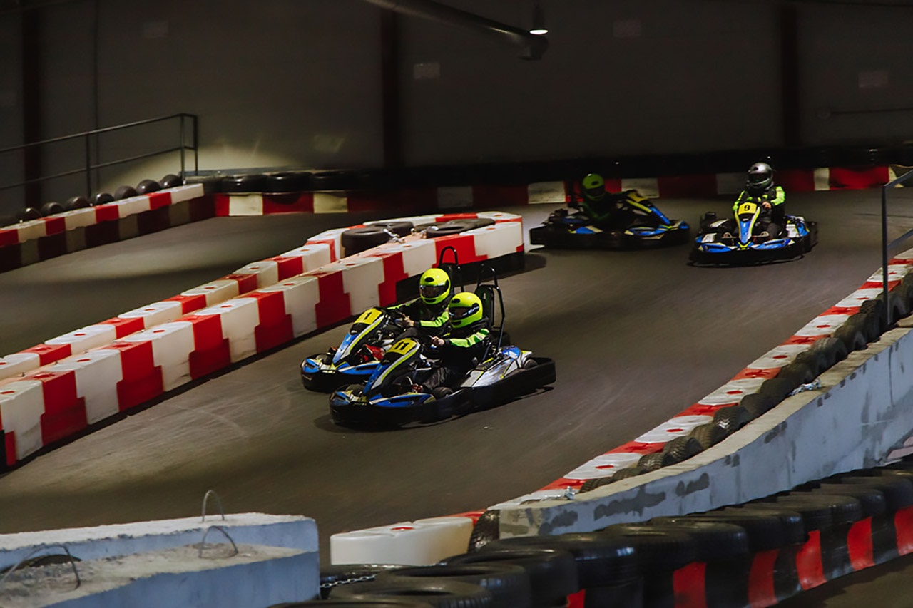 Локация для любителей картинга. Для именинников подготовят индивидуальное шоу с ведущим. По заказу на праздник пригласят ди-джея. Участники заезда почувствуют атмосферу гонок, словно они на стадионе Формула-1. После заездов гости отправляются в ресторан.