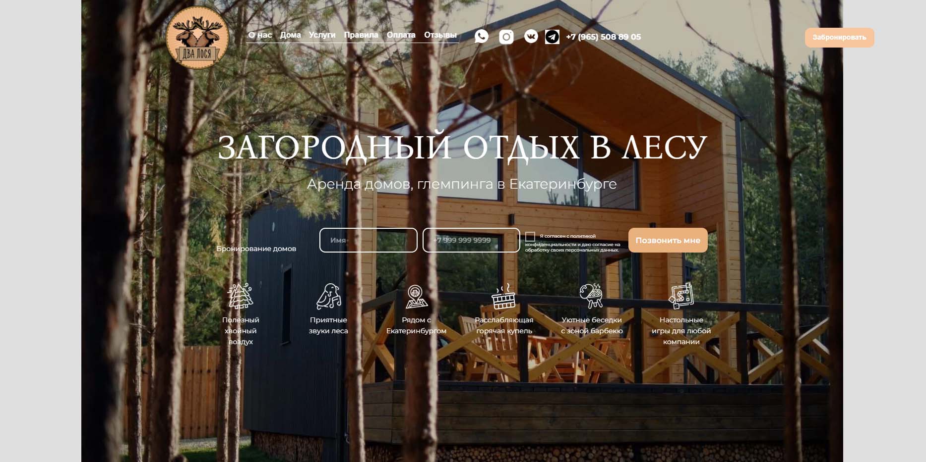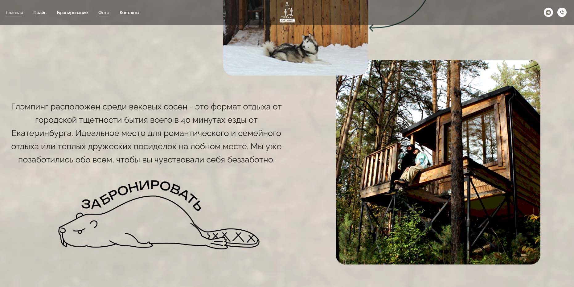 Сказочная красота соснового леса и комфортные дома с окнами в пол притягивают туристов. Здесь приятно отдохнуть от городского шума. Концепция тишины и внимание к мелочам делают пребывание здесь гармоничным. У каждого домика есть свой чан, а любители попариться могут посетить СПА-комплекс. От глэмпинга можно совершить прогулку до ближайшего водоема, где есть обустроенный пляж.